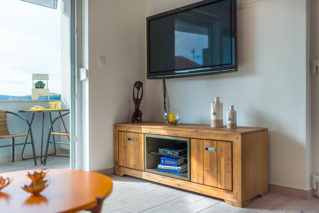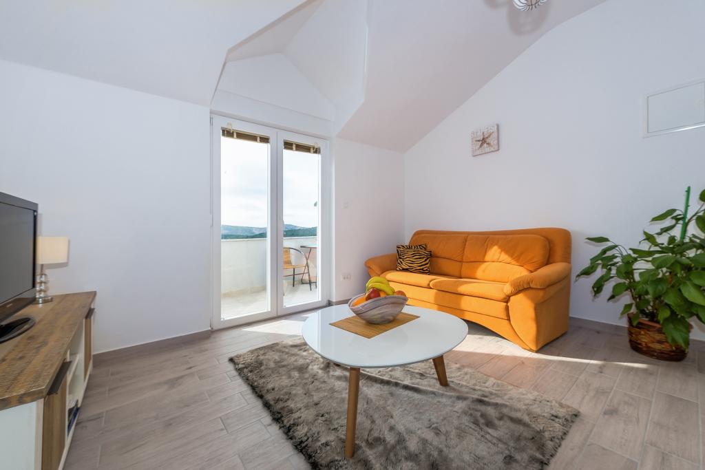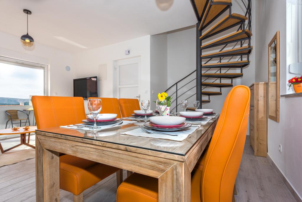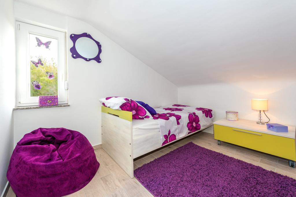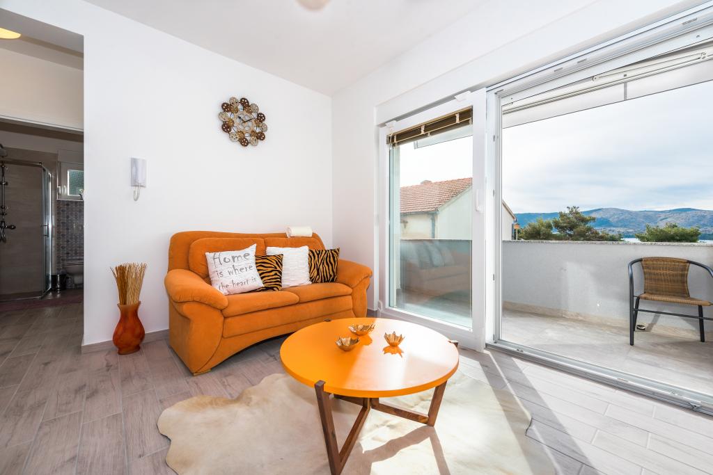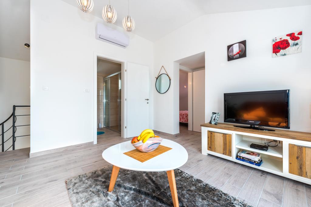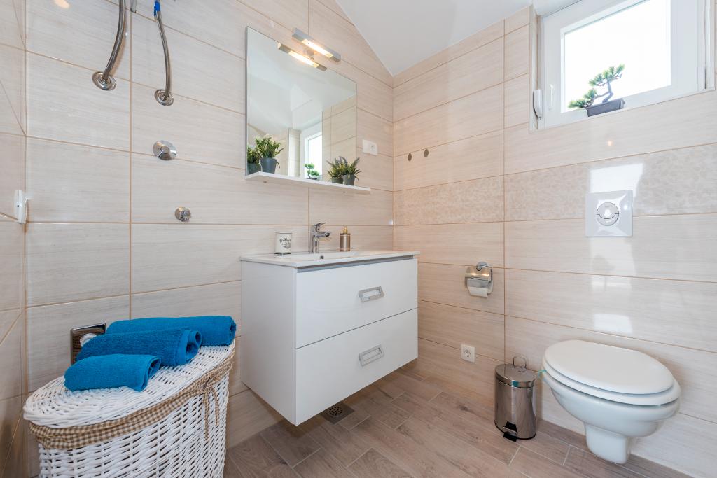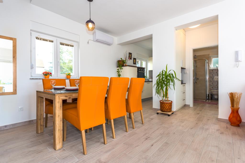 Apartament Marita znajduje się w spokojnej okolicy Žaborić zwanej Crveni brig, jest to około kilka minut od morza. Mieści się w niewielkim budynku na pierwszym piętrze. W mieszkaniu znajdują się dwa bezpłatne garaże. Powierzchnia mieszkania to około 100 m2, rozłożona na dwóch piętrach połączonych wewnętrznymi schodami.Na pierwszym piętrze znajduje się nowoczesna kuchnia ze wszystkimi sprzętami AGD, łazienka, pokój dzienny, balkon oraz sypialnia z łóżkiem małżeńskim . Na piętrze znajdują się dwa pokoje, jeden z dwoma pojedynczymi łóżkami i drugi z łóżkiem małżeńskim, łazienka, pokój dzienny i balkon z widokiem na morze. W apartamencie znajduje się zmywarka i pralka oraz dwa klimatyzatory. Jeden z garaży połączony jest z wewnętrzną klatką schodową i wejściem do budynku. W pobliżu znajdują się dwie restauracje, wypożyczalnia łódek i skuterów wodnych, park rozrywki na wodzie. W pobliżu znajduje się także Park Narodowy Krka, oddalony o około 20 km autostradą.