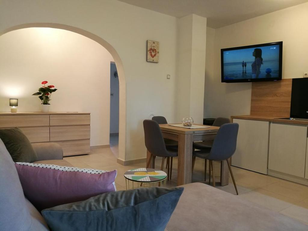 Apartament Branko ma taras i znajduje się w Žaborić, w Szybeniku - Knin County. Mają klimatyzację i bezpłatny bezprzewodowy dostęp do Internetu. Apartamenty obejmują 2 sypialnie, salon z telewizorem z płaskim ekranem, w pełni wyposażoną kuchnię oraz łazienkę z prysznicem i bezpłatnym dostępem do kosmetyków. Goście mogą korzystać ze sprzętu do grillowania i zrelaksować się w ogrodzie. Trogir oddalony jest od apartamentów Branko o 44 km, a Szybenik - o 11 km. Lotnisko w Splicie ma 43 km. Porozmawiajmy w twoim języku!