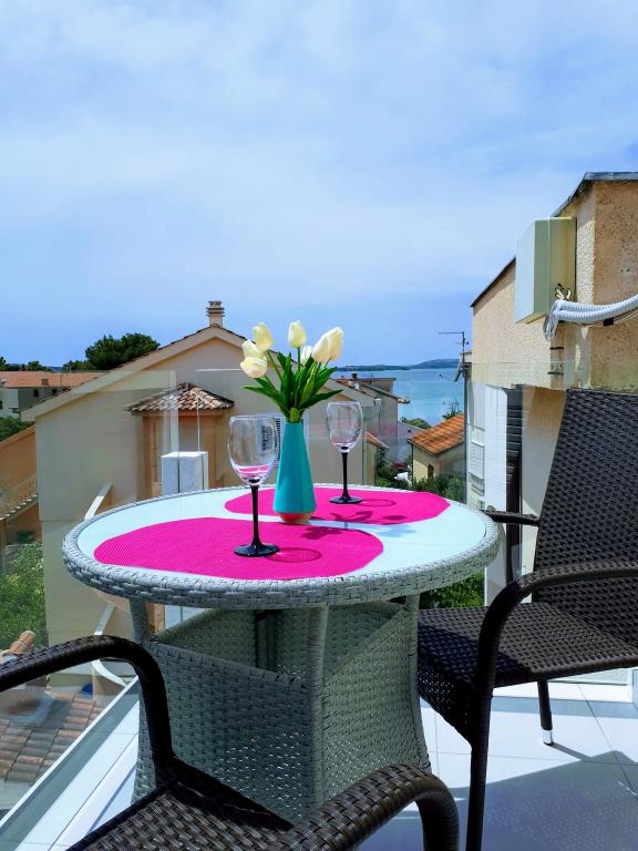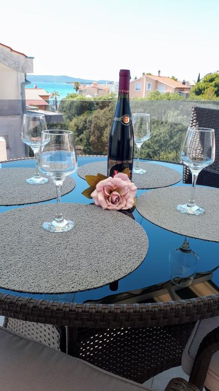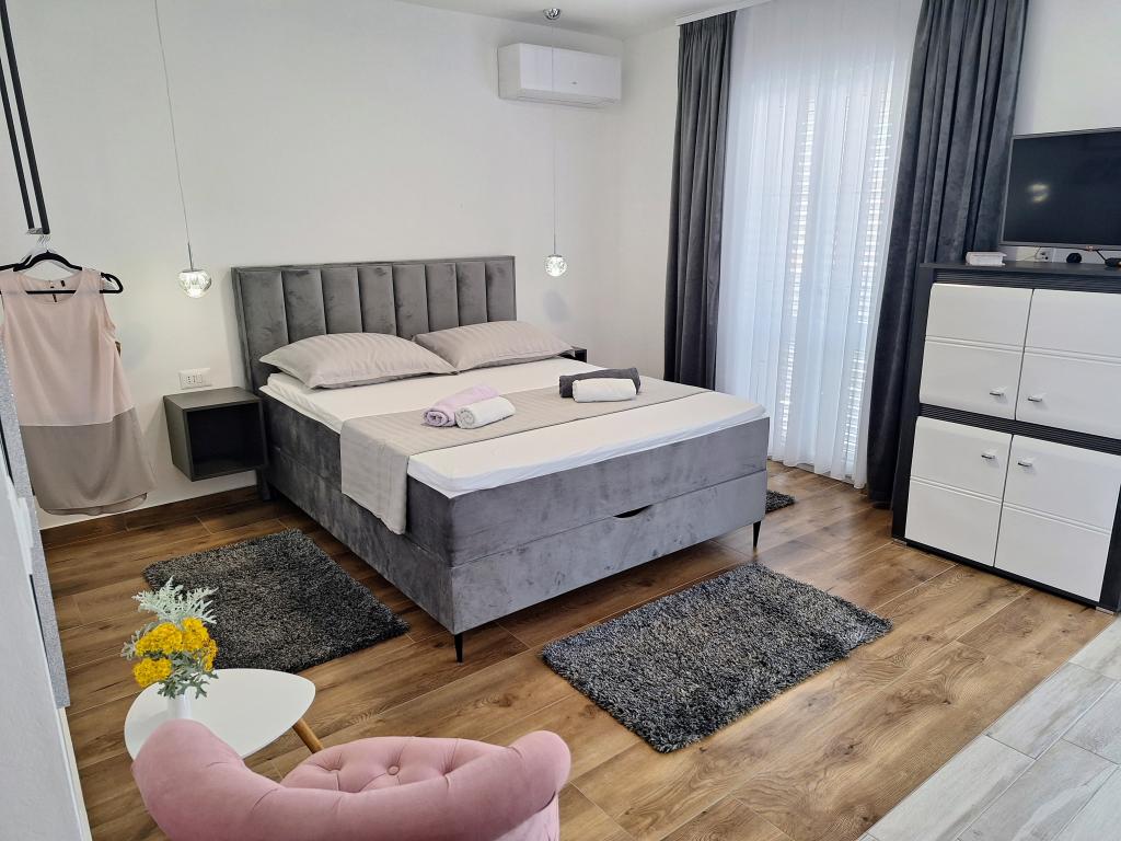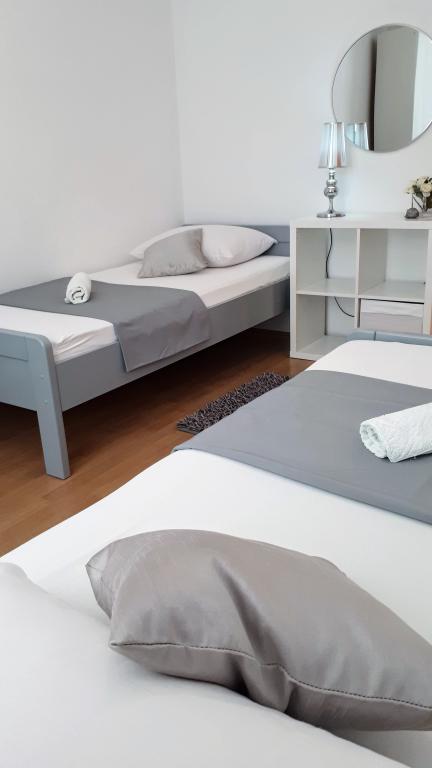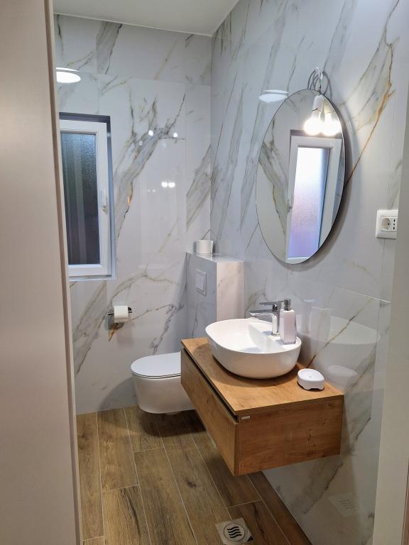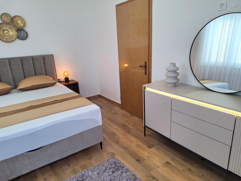 W pełni wyposażone apartamenty położone w spokojnej miejscowości Žaborić, 50 m od morza i plaży. W budynku znajduje się łącznie pięć mieszkań zlokalizowanych na pierwszym i drugim piętrze domu. W domu znajduje się parking, grill, prysznic na zewnątrz z ciepłą wodą i garderobą oraz duży wspólny taras na podwórku. Wszystkie apartamenty są klimatyzowane, posiadają TV/SAT, a dom posiada darmowe WiFi. Nasze apartamenty, podobnie jak miasto Žaborić, są idealne na spokojny, rodzinny wypoczynek, z dala od zgiełku i zgiełku miasta.