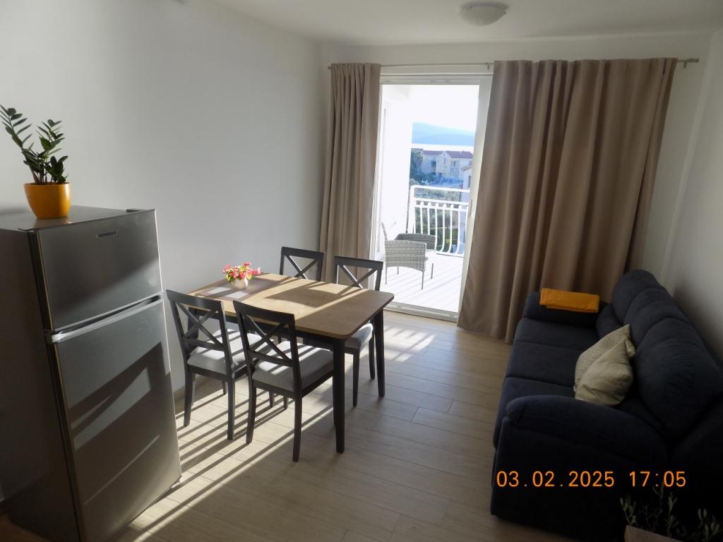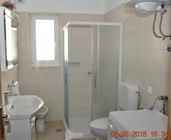 Apartament A6 jest idealny. Dobrze wyposażony i czysty apartament z pięknym widokiem na morze i dużym tarasem. 3 sypialnie, 2 łazienki zw pełni wyposażoną kuchnią. Ogólnie przyjemne otoczenie, prysznic na zewnątrz, parking i miejsce do przechowywania sprzętu plażowego. Gospodarz i jego rodzice są mili i gościnni. Plaża odpowiednia dla dzieci, piaszczysto-kamienista ze stopniowym zejściem do morza. Mieszkanie jest bardzo blisko plaży lub 50 metrów wzdłuż drogi. Możliwość wypożyczenia roweru wodnego, kajaka, paddleboardu. Polecamy bar na plaży Ginger, gdzie mają wyśmienitą pizzę, drinki, piwo oraz doskonałą i szybką obsługę. Mieszkanie jest fantastyczne, mam nadzieję, że wrócimy.
