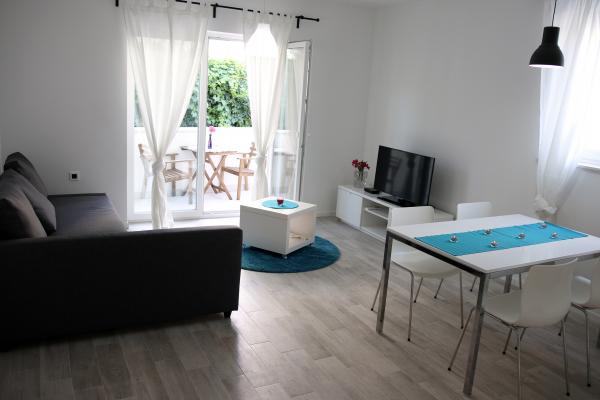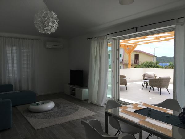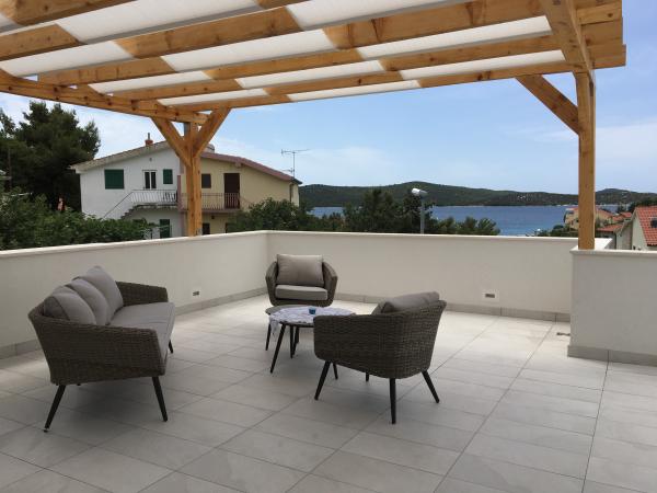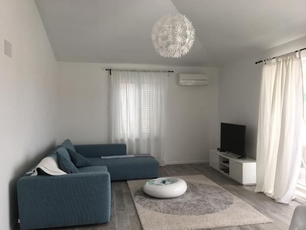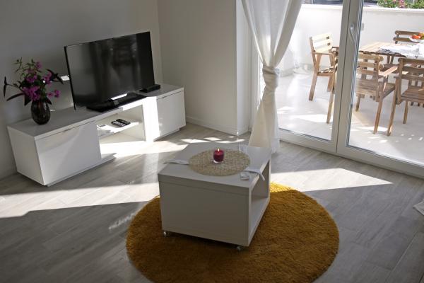 Nowe, komfortowe, nowocześnie wyposażone apartamenty w Žaborić (10 km od Šibenika) położone w drugim rzędzie od morza. Obiekt położony jest kilka minut spacerem od żwirowo-betonowej plaży. Wszystkie apartamenty posiadają taras/balkon, w pełni wyposażoną kuchnię, łazienkę z prysznicem. Apartamenty wyposażone są w telewizję satelitarną i bezprzewodowy internet. Na terenie obiektu znajduje się basen zewnętrzny, z którego można korzystać codziennie w godzinach 10:00 – 22:00. Obiekt posiada wystarczającą ilość miejsc parkingowych dla wszystkich użytkowników apartamentu.