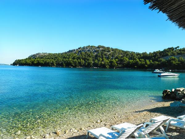 Przestronne i nowoczesne apartamenty znajdują się w odległości 30 metrów od plaży z widokiem na morze, bezpłatny bezprzewodowy dostęp do Internetu oraz parking. Każdy apartament posiada własną kuchnię i łazienkę. Obiekt położony jest w odległości zaledwie 5 minut spacerem do centrum miasta, restauracji i kawiarni. Najbliższy sklep spożywczy znajduje się w odległości 15 minut. Użytkownicy mogą wybierać z kamienia, żwiru, piasku i plaży betonowej. Jest bezpłatny ramp do wodowania i usuwanie łodzie z morza. Istnieją również siatkówka i piłka wodna sądy, a plac zabaw dla dzieci z piaskownicą. Regularne linie autobusowe łączą Žaborić z lokalnych miejsc. Sibenik centrum jest tylko 12 km, Park Narodowy Krka 25 km, a do Parku Narodowego Kornati zorganizowanej żeglarstwa turystycznego w sezonie letnim.
