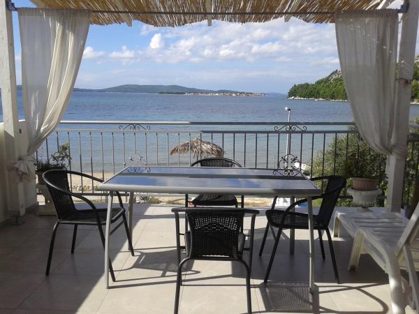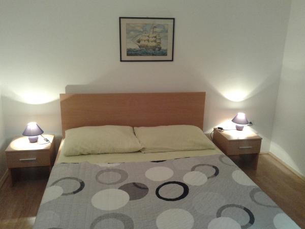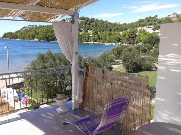 Apartamenty Slavka znajduje się w pięknej zatoce na kamienistej plaży, 20 metrów od morza. Oferujemy również 3-pokojowe apartamenty dla 2-4 osób. Oferta obejmuje dwupokojowe mieszkanie z 95m2, aby pomieścić 4-7 osób z dużym tarasem z widokiem na morze. Wszystkie apartamenty mają bezpośredni widok na morze. Mieszkania są w pełni wyposażone i cena klimatizirani.U obejmuje klimatyzację, WiFi Internet, leżaki i wszystkie podatki. Jest też grill. Bezpłatny parking dla wszystkich gości w domu. Dziękujemy za zainteresowanie i pozdrawiam z Chorwacji.