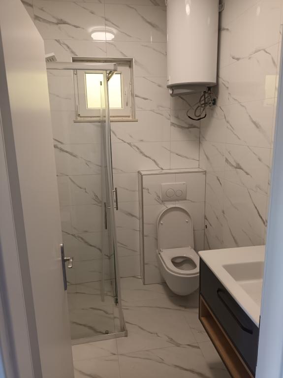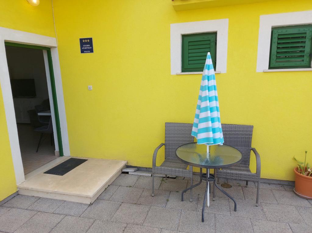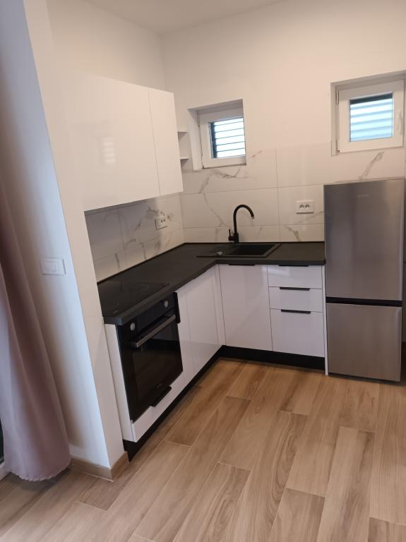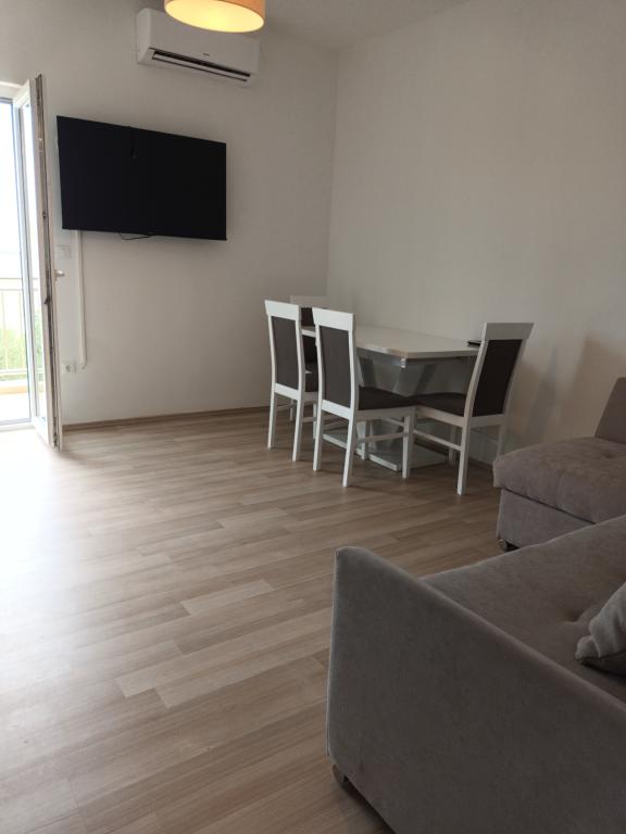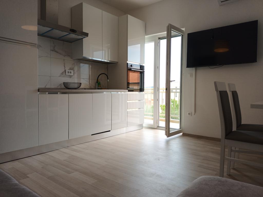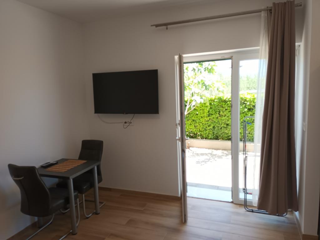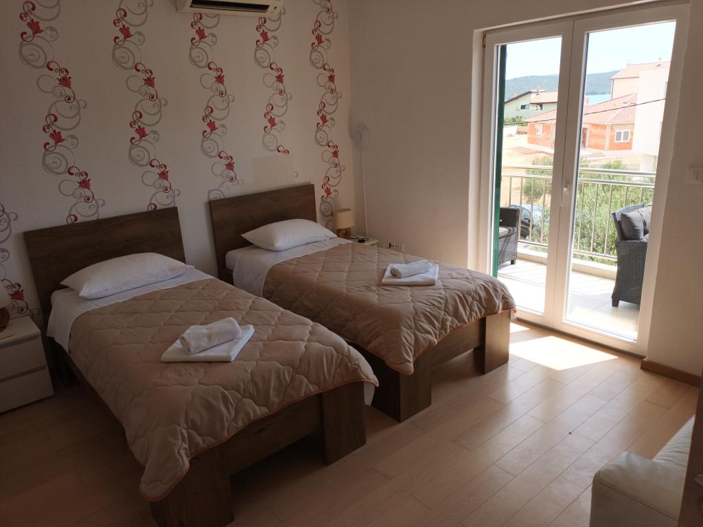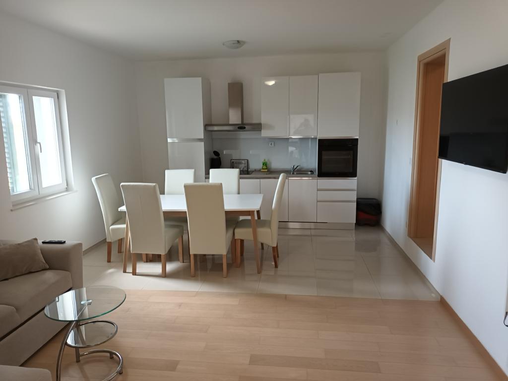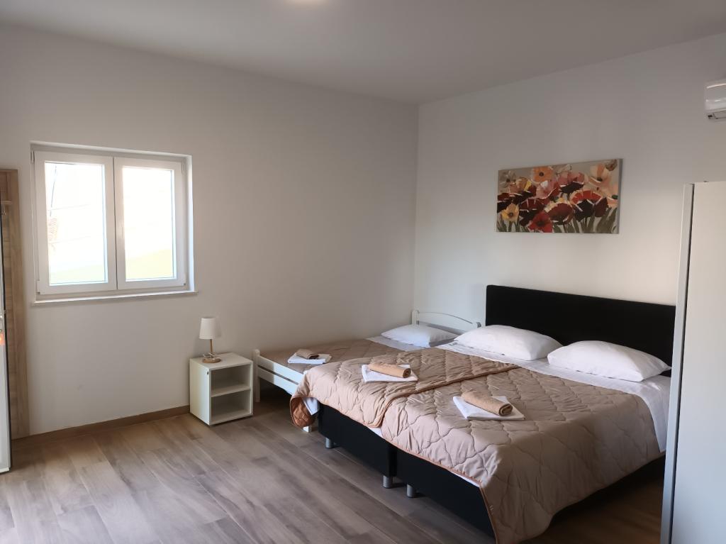 Czytaj więcej KwaterApartament A 5+2 ID 79415 znajduje się na pierwszym piętrze i posiada: dwie sypialnie, jedna z dużym podwójnym łóżkiem, druga z 3 łóżkami dla jednej osoby, kuchnię z salonem, w którym znajduje się rozkładana sofa dla dwóch osób osób, 2x łazienki i balkon ze stołem. Apartament A 3+2 ID 79447 znajduje się na pierwszym piętrze i posiada: jedną sypialnię z dużym łóżkiem małżeńskim + łóżko dla jednej osoby, kuchnię z salonem, w którym znajduje się rozkładana sofa dla dwóch osób, 2x łazienki oraz balkon ze stołem. Apartament typu Studio A 2+1 ID 79448 znajduje się na parterze i posiada: łóżko podwójne + łóżko pojedyncze, kuchnię, łazienkę i taras ze stołem. Apartament typu Studio A 2+0 ID 79449 znajduje się na parterze i posiada: podwójne łóżko, kuchnię, łazienkę oraz taras ze stołem. Zaliczka za rezerwację wynosi 20% z góry na konto bankowe najemcy, reszta po przyjeździe. Zaliczka nie podlega zwrotowi. Zameldowanie możliwe jest od godziny 15:00, wymeldowanie do godziny 10:00.
