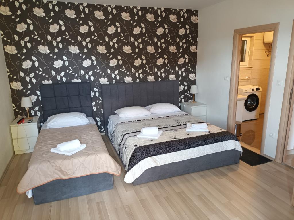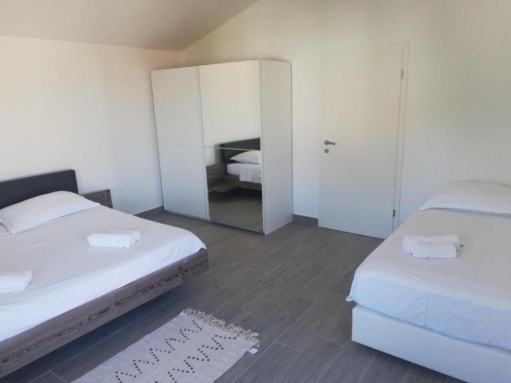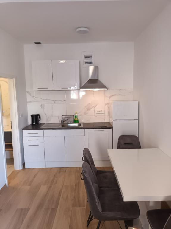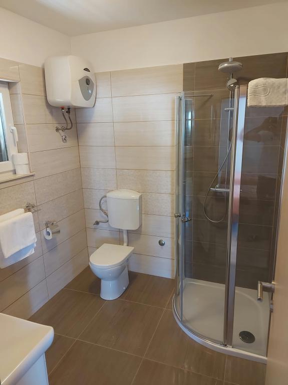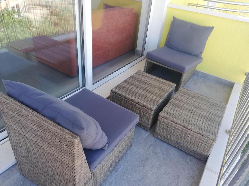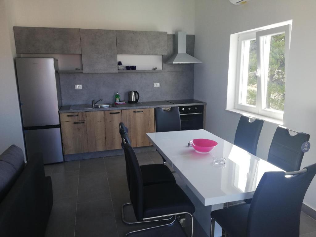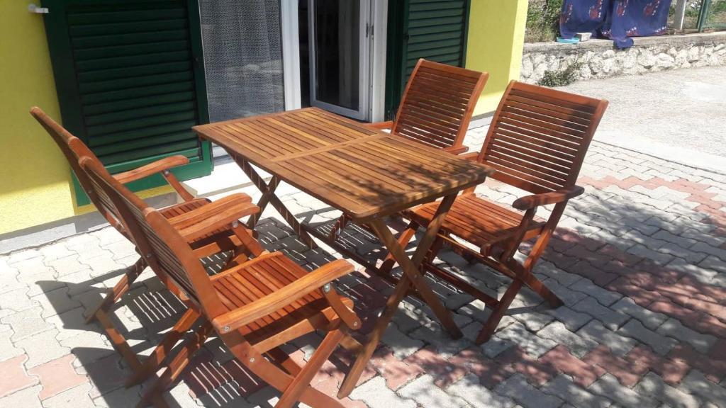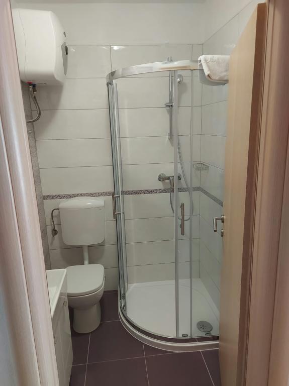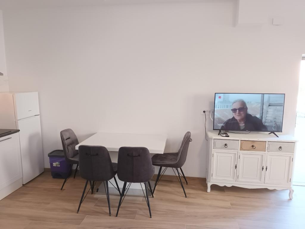 Czytaj więcej KwaterApartament A 5+2 ID 79415 znajduje się na pierwszym piętrze i posiada: dwie sypialnie, jedna z dużym podwójnym łóżkiem, druga z 3 łóżkami dla jednej osoby, kuchnię z salonem, w którym znajduje się rozkładana sofa dla dwóch osób osób, 2x łazienki i balkon ze stołem. Apartament A 3+2 ID 79447 znajduje się na pierwszym piętrze i posiada: jedną sypialnię z dużym łóżkiem małżeńskim + łóżko dla jednej osoby, kuchnię z salonem, w którym znajduje się rozkładana sofa dla dwóch osób, 2x łazienki oraz balkon ze stołem. Apartament typu Studio A 2+1 ID 79448 znajduje się na parterze i posiada: łóżko podwójne + łóżko pojedyncze, kuchnię, łazienkę i taras ze stołem. Apartament typu Studio A 2+0 ID 79449 znajduje się na parterze i posiada: podwójne łóżko, kuchnię, łazienkę oraz taras ze stołem. Zaliczka za rezerwację wynosi 20% z góry na konto bankowe najemcy, reszta po przyjeździe. Zaliczka nie podlega zwrotowi. Zameldowanie możliwe jest od godziny 15:00, wymeldowanie do godziny 10:00.