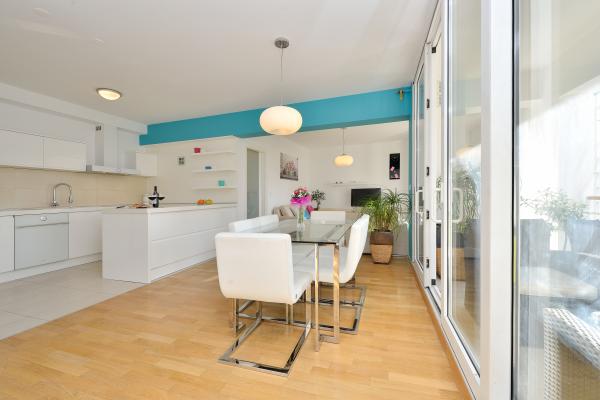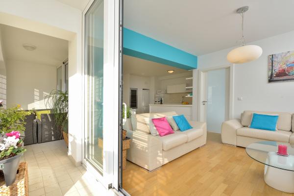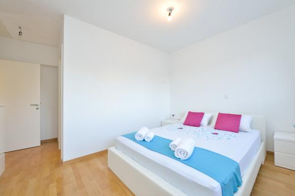 Luksusowy nowy apartament w wyjątkowej lokalizacji. Mieszczący się w eleganckim, spokojnych i bezpiecznych dzielnicach w pobliżu morza i centrum miasta (5 min pieszo). Mieszkanie posiada prywatny garaż. W pobliżu znajdują się wszystkie niezbędne urządzenia: restauracje, bary, poczta, banki, salony piękności, plaża miejska, cepka gazu, rynek, targ rybny, do portu, zabytków, taxi itp ... Mieszkanie jest novopremljen najwyższych standardów (95 m2) składa się z trzech pokoi, a każdy z nich ma LCD. Główna sypialnia posiada łazienkę. Druga łazienka wyposażona jest w pralkę i suszarkę do towarów. Salon i jadalnia są słoneczne szklanymi ścianami, które prowadzą na balkon i wyposażone we wszystkie niezbędne rzeczy: LCD, internet, domofon, zmywarka do naczyń, okap, piekarnik i sztućce. Balkon ma ładny taras idealny do porannego śniadania i relaksujące. Lotnisko znajduje się 12 km od apartamentów i istnieje możliwość organizacji transportu, a także oferuje pomoc w organizacji podróży.