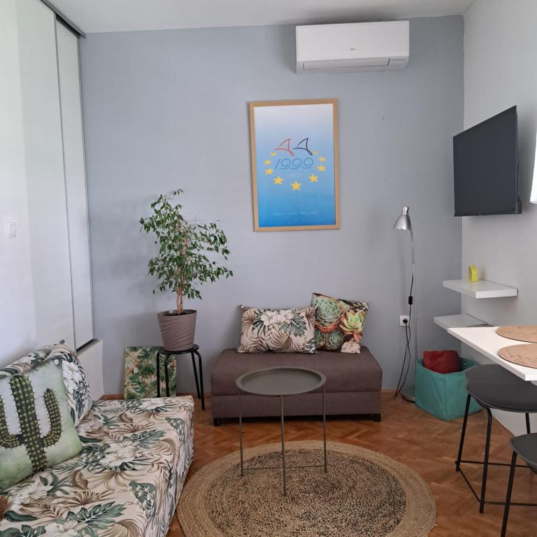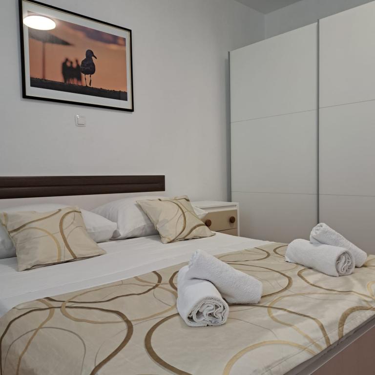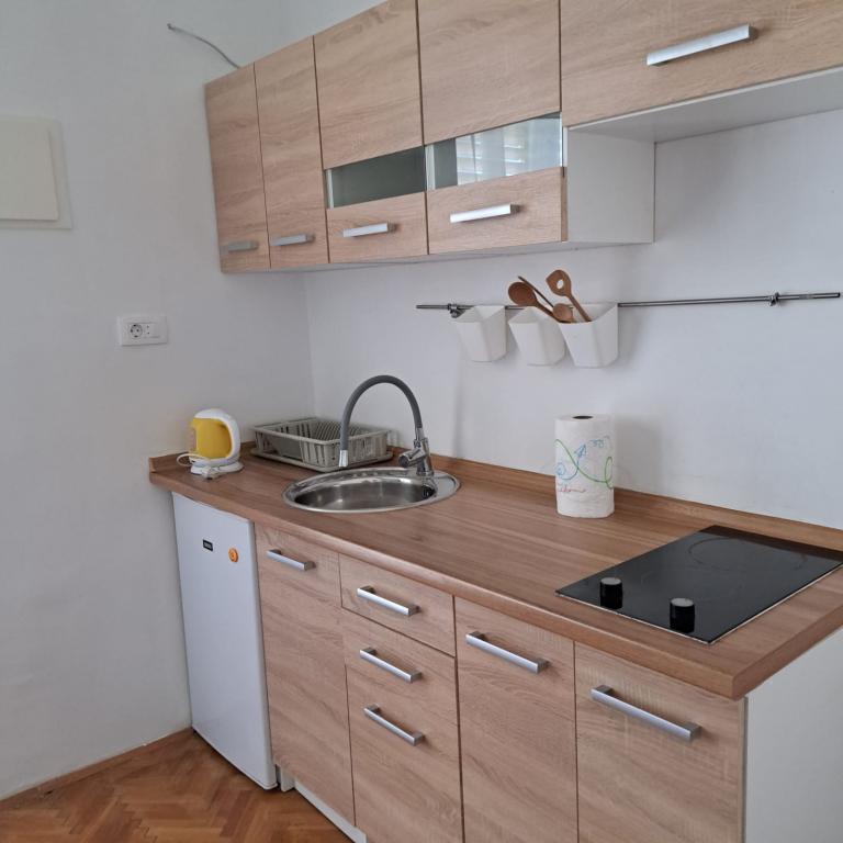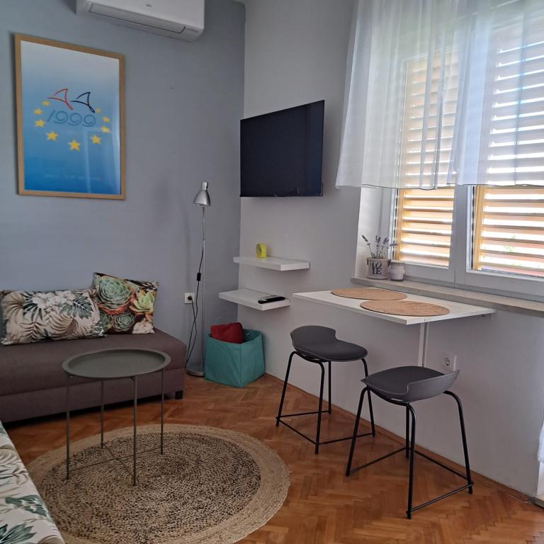 W pełni wyposażony apartament w spokojnej części Zadaru z widokiem na morze. Budynek położony jest 300 metrów od morza i 400 metrów od najbliższej plaży. Centrum oddalone jest o około 1 km, a ścieżkę do centrum można pokonać wspaniałym spacerem (Karma i Kolovare) wzdłuż morza. Mieszkanie przeznaczone jest dla dwóch osób i składa się z jednej sypialni z wyjściem na balkon, przestronnego salonu połączonego z kuchnią oraz łazienki (prysznic, pralka...). Z balkonu roztacza się widok na morze.