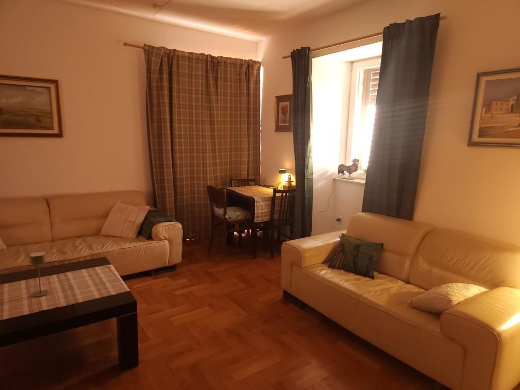 Romantyczny apartament na Kalelarga – serce starego Zadaru Ten uroczy apartament znajduje się w samym sercu historycznego Zadaru, w autentycznym kamiennym budynku z widokiem na Kalelarga – najsłynniejszą i najbardziej malowniczą ulicę w mieście. Nasz apartament, przesiąknięty duchem minionych czasów i urządzony z dbałością o szczegóły, oferuje idealne połączenie tradycji i komfortu. Idealny dla par szukających romantycznego wypadu, apartament emanuje ciepłem i intymną atmosferą. Delikatne kolory tworzą poczucie spokoju i elegancji, podczas gdy okna z salonu oferują nieodparty widok na promenadę, którą codziennie przechodzą miejscowi, muzycy i miłośnicy śródziemnomorskiego ducha. Zachód słońca nad miastem, szept morza i odgłos kroków z Kalelarga zamieniają Twój pobyt w niezapomniane przeżycie. Witamy w Twojej zadarskiej przystani – gdzie historia, romantyzm i piękno spotykają się w jednym widoku z okna.