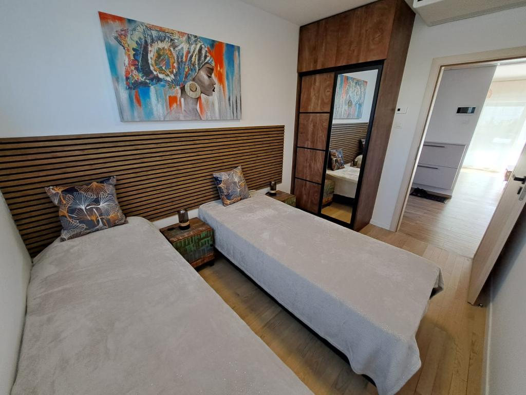 WYPOSAŻENIE APARTAMENTU: - klimatyzacja i ogrzewanie w każdym pomieszczeniu (pompa ciepła, ogrzewanie podłogowe w łazience) - WiFi - TV - pralko-suszarka - zmywarka - piekarnik z mikrofalą - płyta indukcyjna - lodówka - naczynia, przybory do gotowania, sztućce - czajnik elektryczny - ekspres do kawy (kapsułki) - ścierki kuchenne - pościel - ręczniki - ręczniki do jacuzzi - suszarka do włosów - sejf - komplet mebli ogrodowych - prysznic zewnętrzny - suszarka i spinacze do prania - podstawowe środki czystości Apartament nie posiada grilla. Doskonałe dania z rożna można zakupić w pobliskich restauracjach. ODLEGŁOŚCI: 600m - centrum sportowo - rekreacyjne Višnjik (kryte baseny, korty tenis i padel, piłka nożna, koszykówka, tenis stołowy, bieżnie do joggingu, siłownia na powietrzu, place zabaw dla dzieci, park trampolin, mini golf, bouncing castle, tor do rolek /lodowisko), 1,8 km - stare miasto, 2 km - plaża Kolovare, 1,6 km - główny dworzec autobusowy, 10 km - lotnisko Zadar Zemunik