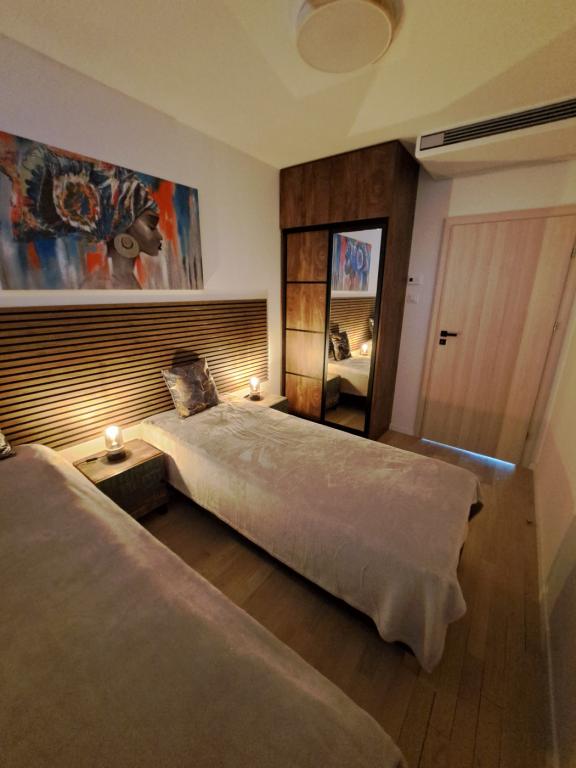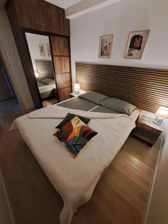 Zwiedzaj! Wypoczywaj! Delektuj się atmosferą Dalmacji! Apartament położony jest na parterze budynku zlokalizowanego w spokojnej zadarskiej dzielnicy Stanovi, do której nie docierają tłumy turystów. W pobliżu (odległość spacerowa) znajdują się sklepy wielobranżowe oraz liczne punkty usługowe- wszystko czego potrzebujesz nawet przy dłuższym pobycie, bez konieczności korzystania z samochodu. Kwatera posiada niezależne wejście z własnego ogródka (ok. 55m2), w którym do dyspozycji gości jest prywatne jacuzzi. Ogródek otoczony jest zielenią. Apartament obejmuje pokój dzienny połączony z kuchnią i aneksem jadalnym, 2 sypialnie (w każdej jedno łóżko dwuosobowe z możliwością rozdzielenia na dwa pojedyncze), łazienkę z prysznicem oraz zadaszoną loggię (ok. 7m2). Część ogrodu z wanną spa można zacienić automatycznie rozsuwaną roletą. Przed budynkiem posiadamy 2 prywatne miejsca parkingowe. Oferujemy również własną stację ładowania samochodów elektrycznych! (opłata dodatkowa)