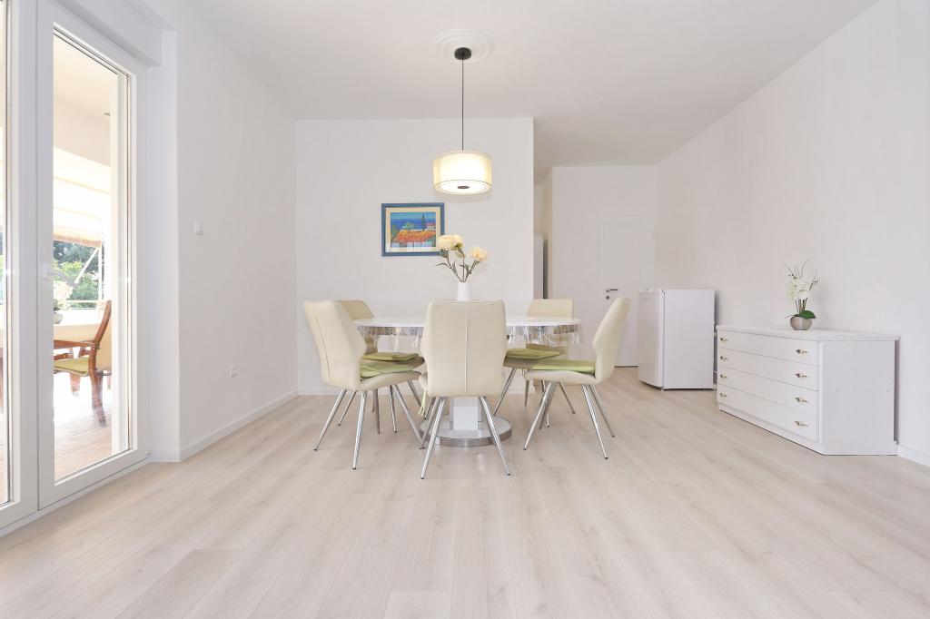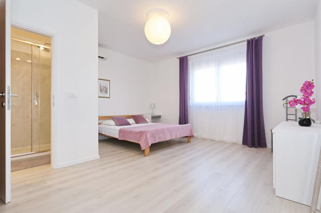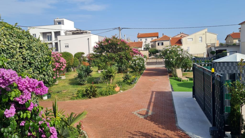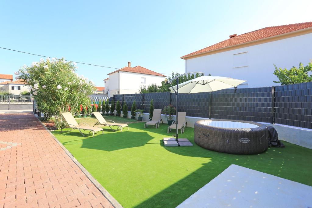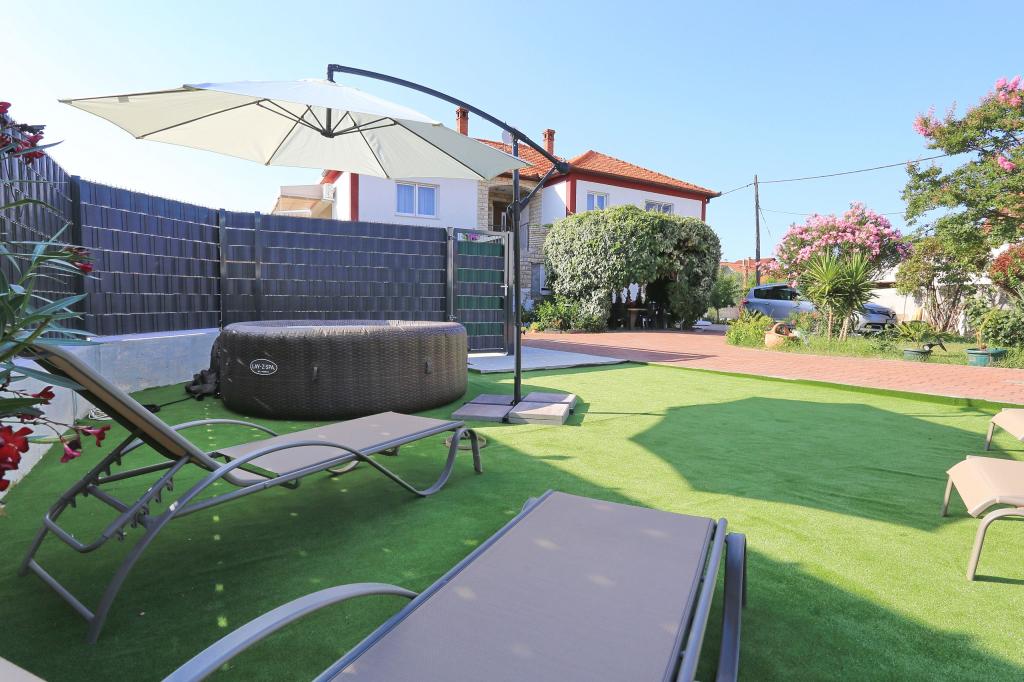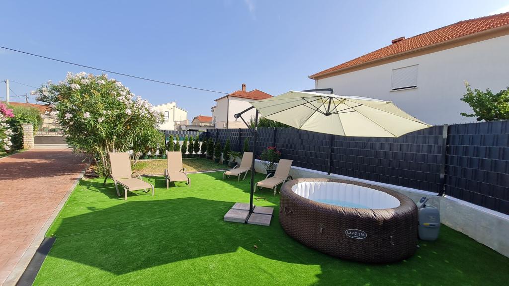 Apartament Zielona oaza Zadar znajduje się w spokojnej okolicy, na pierwszym piętrze rodzinnego domu, który posiada własny park o powierzchni 400 m2. Mieszkanie ma 140 m2. W obrębie apartamentu dostępne są również: jacuzzi w parku z leżakami, stół do tenisa stołowego oraz bezpłatny prywatny parking. Apartament jest w pełni klimatyzowany i ma darmową sieć WIFI. Przestrzeń apartamentu podzielona jest na 3 sypialnie i salon.W dwóch pokojach znajdują się podwójne łóżka z możliwością dostawki oraz jeden pokój jednoosobowy. W salonie znajduje się kanapa będąca jednocześnie wygodnym łóżkiem dla dwóch osób. Mieszkanie posiada dwie w pełni wyposażone łazienki, wyposażoną kuchnię z lodówką i zamrażarką oraz dużą spiżarnię z biurkiem. Ten komfortowy apartament posiada również taras o powierzchni 25 m2 z dużym stołem i grillem.