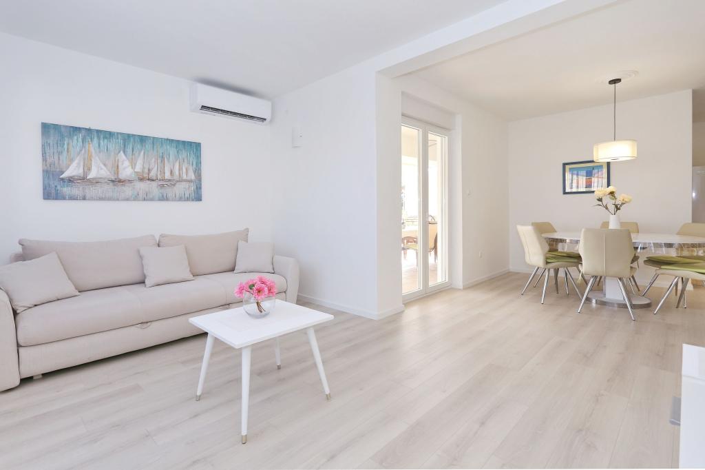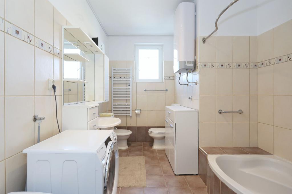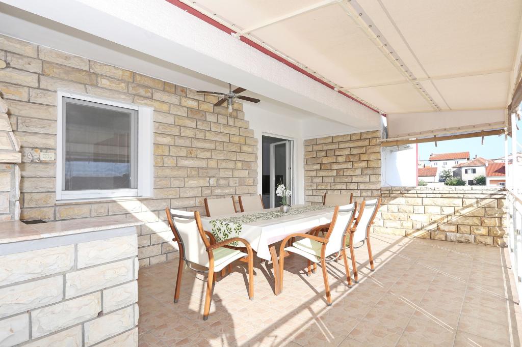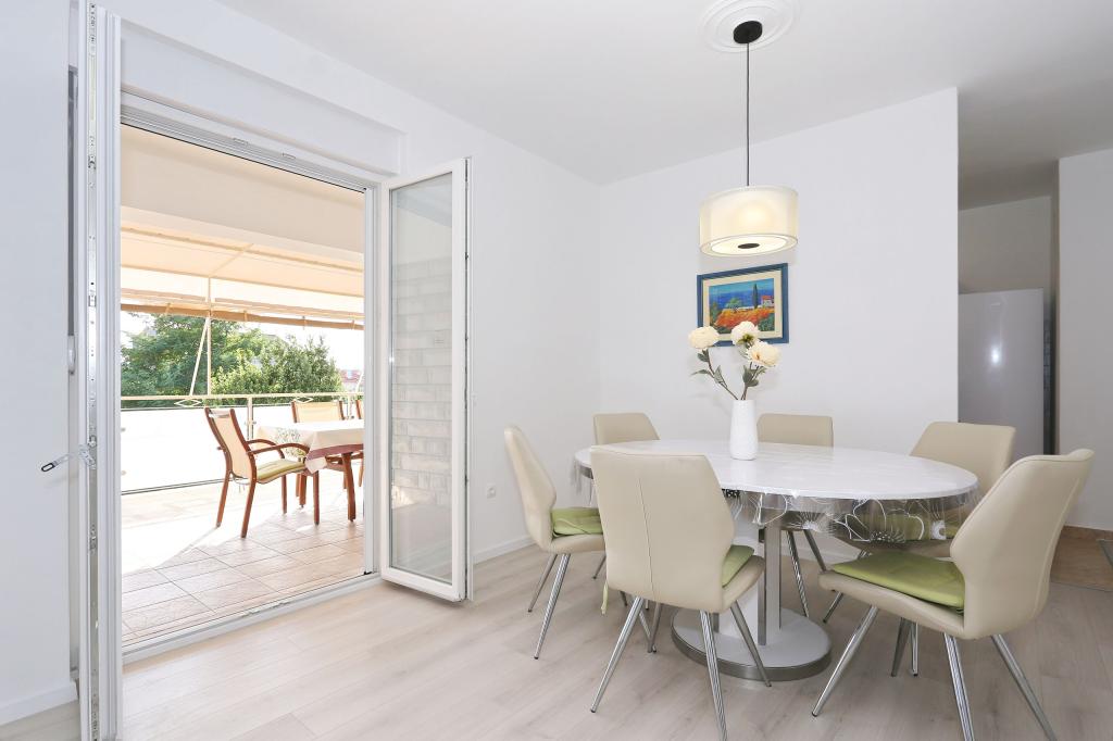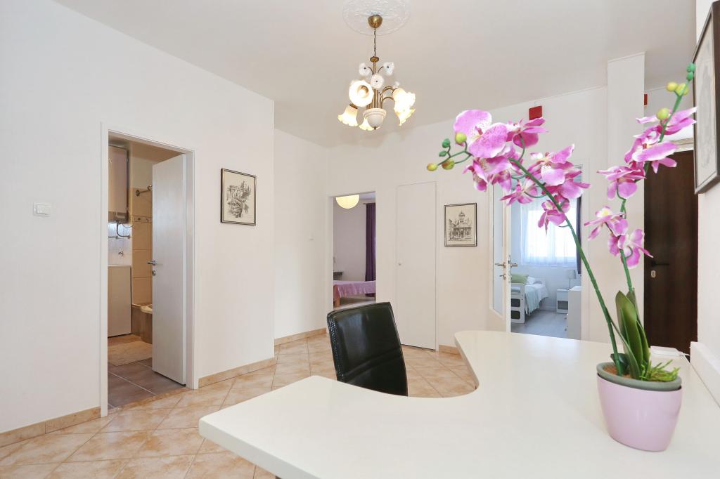 Apartament Zielona oaza Zadar znajduje się w spokojnej okolicy, na pierwszym piętrze rodzinnego domu, który posiada własny park o powierzchni 400 m2. Mieszkanie ma 140 m2. W obrębie apartamentu dostępne są również: jacuzzi w parku z leżakami, stół do tenisa stołowego oraz bezpłatny prywatny parking. Apartament jest w pełni klimatyzowany i ma darmową sieć WIFI. Przestrzeń apartamentu podzielona jest na 3 sypialnie i salon.W dwóch pokojach znajdują się podwójne łóżka z możliwością dostawki oraz jeden pokój jednoosobowy. W salonie znajduje się kanapa będąca jednocześnie wygodnym łóżkiem dla dwóch osób. Mieszkanie posiada dwie w pełni wyposażone łazienki, wyposażoną kuchnię z lodówką i zamrażarką oraz dużą spiżarnię z biurkiem. Ten komfortowy apartament posiada również taras o powierzchni 25 m2 z dużym stołem i grillem.