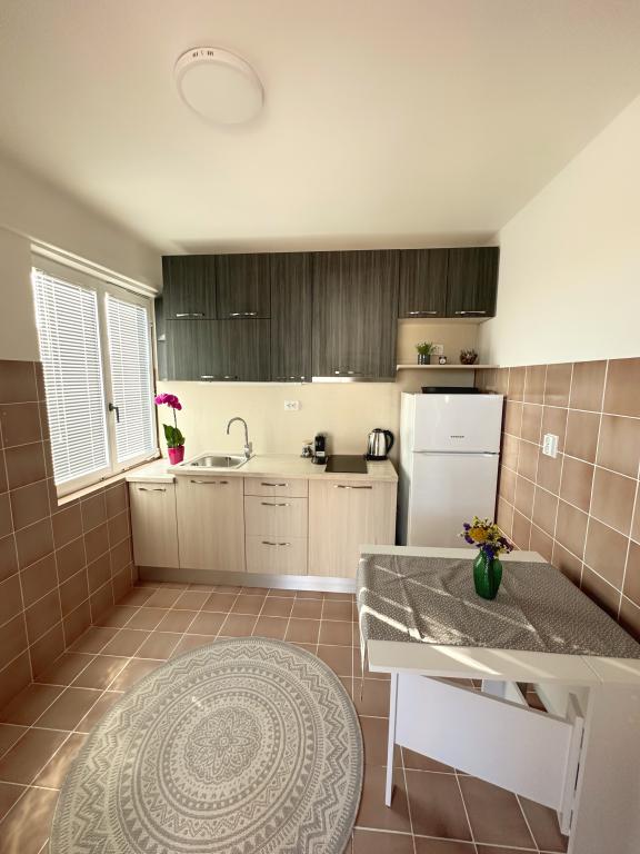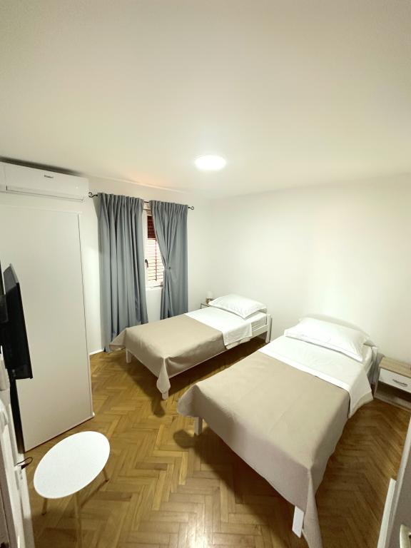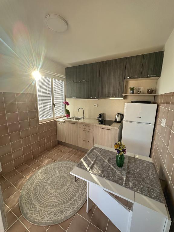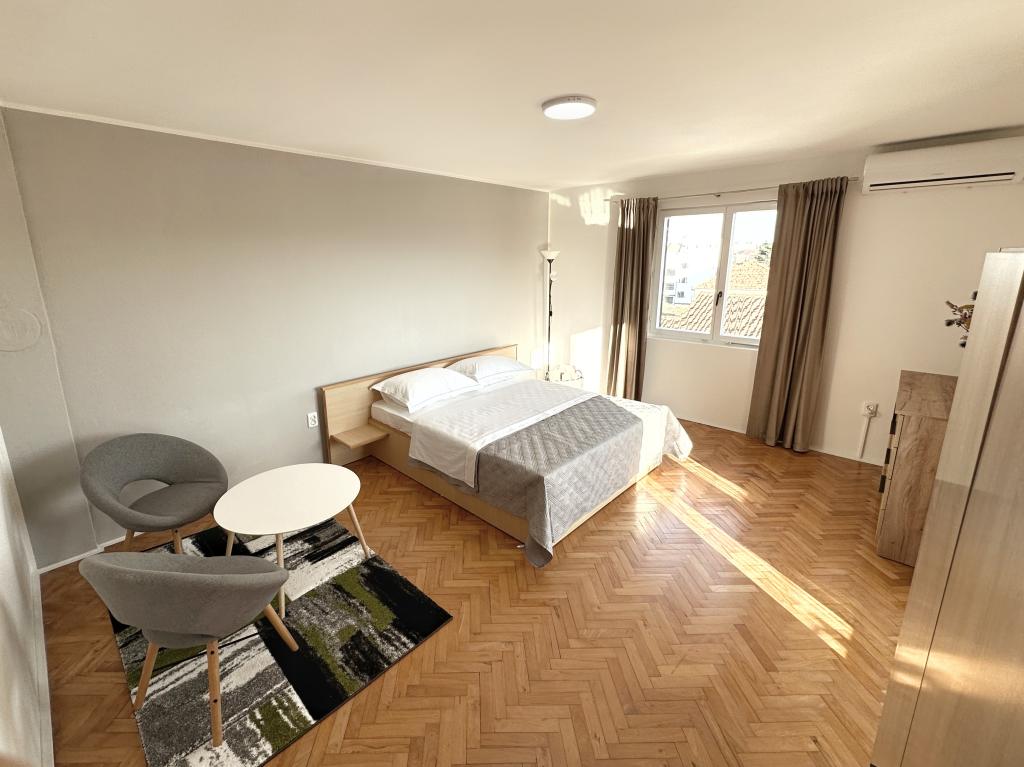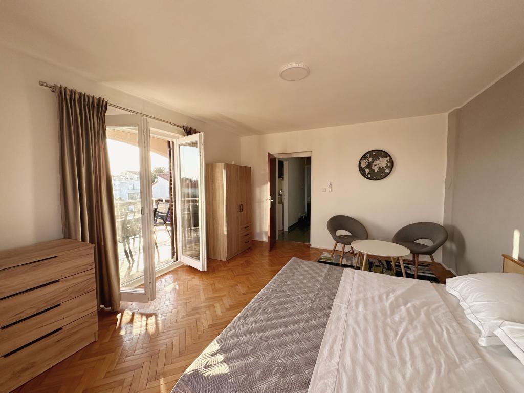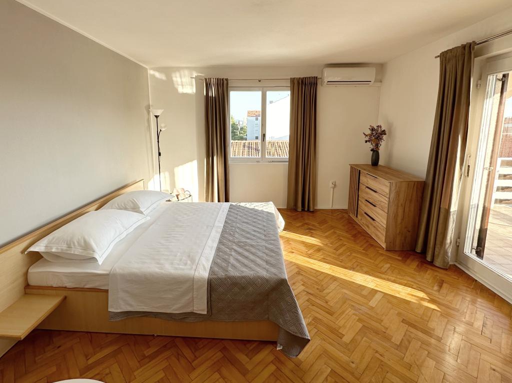 Witamy w rodzinnym domu w pełni wyposażonym mieszkaniu, znajdującym się na trzecim piętrze domu. Apartament znajduje się w Belafuža, w spokojnej części miasta, 2,2 km od centrum miasta i plaży oraz 13 km od lotniska. Powierzchnia mieszkania to 80 m2, na którą składa się łazienka, trzy pokoje, kuchnia oraz przestronny taras. Apartament jest w pełni wyposażony we wszystko co niezbędne do pobytu (2 klimatyzatory, pralka, mikrofala, czajnik, ekspres do kawy Nespresso, 2 telewizory Smart TV oraz bezpłatny internet Wi-Fi. Goście wybierający nasz apartament mają do dyspozycji duży, prywatny parking. apartament jest idealny dla 6 osób.