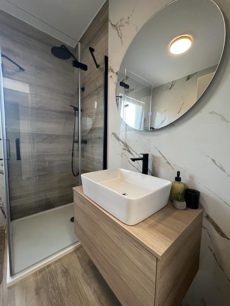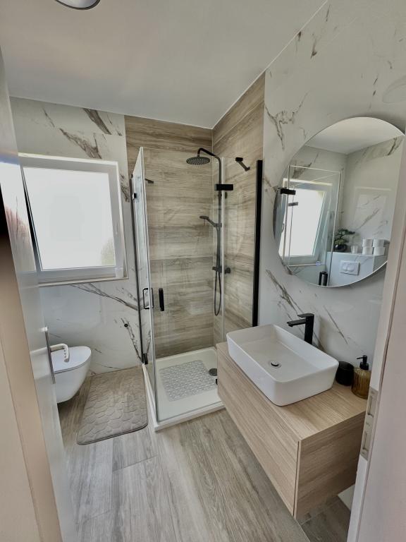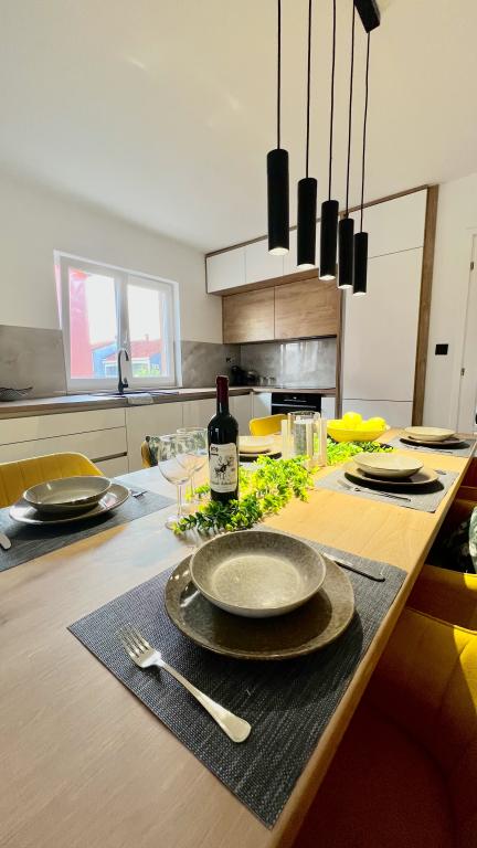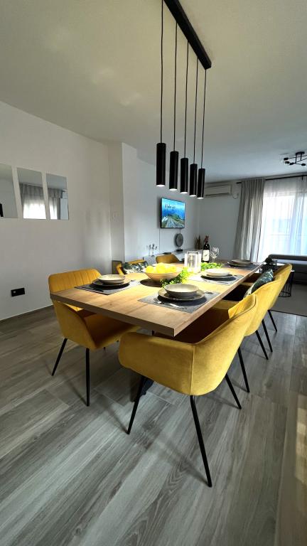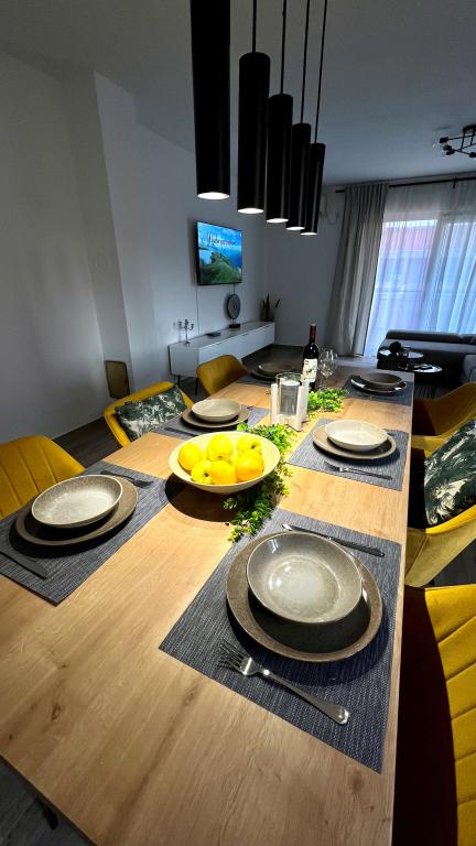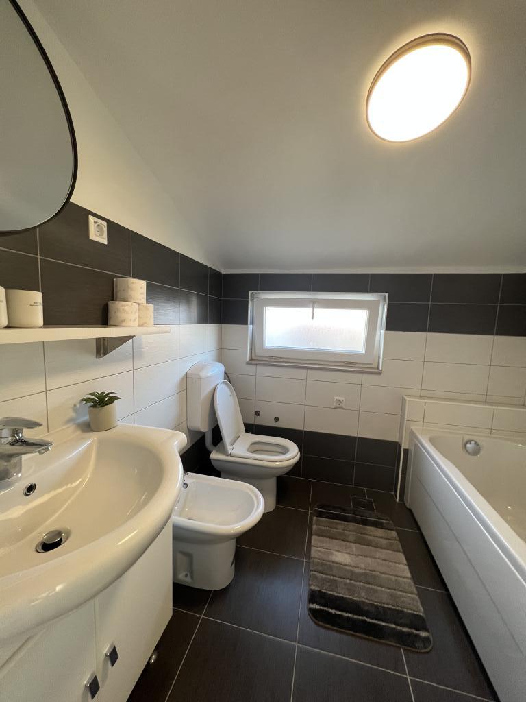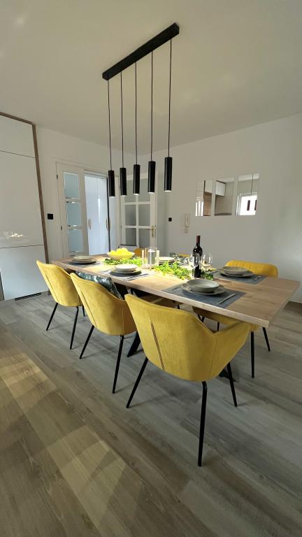 Specjalnością tego apartamentu jest kominek. Ten klimatyzowany apartament dysponuje oddzielnym wejściem, salonem, 3 oddzielnymi sypialniami oraz 2 łazienkami z wanną i prysznicem. W dobrze wyposażonej kuchni goście znajdą kuchenkę, lodówkę, zmywarkę i naczynia. W apartamencie znajduje się również grill. Ten przestronny apartament oferuje pralkę, zestaw do parzenia kawy i herbaty, część wypoczynkową oraz taras z widokiem na ogród. Jednostka posiada 4 łóżka.