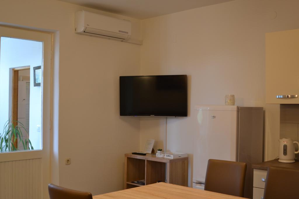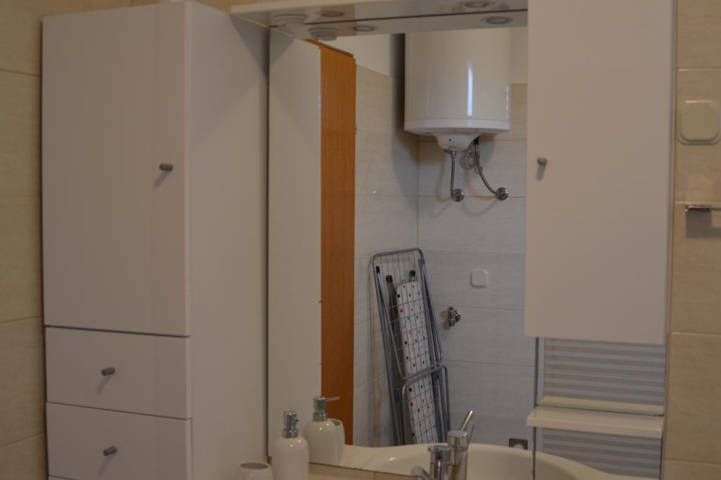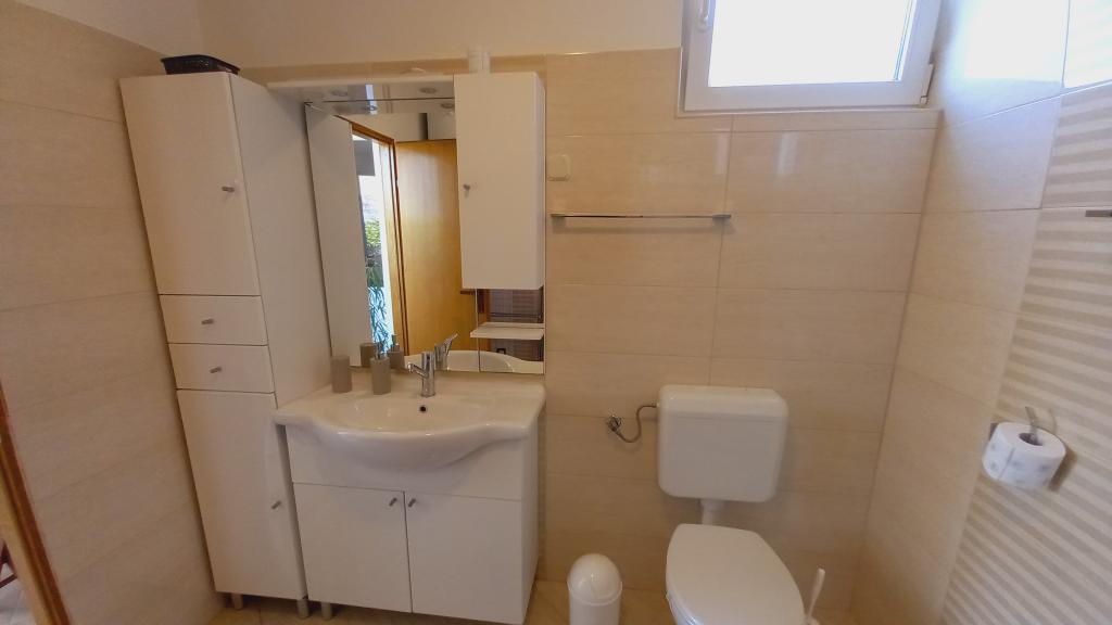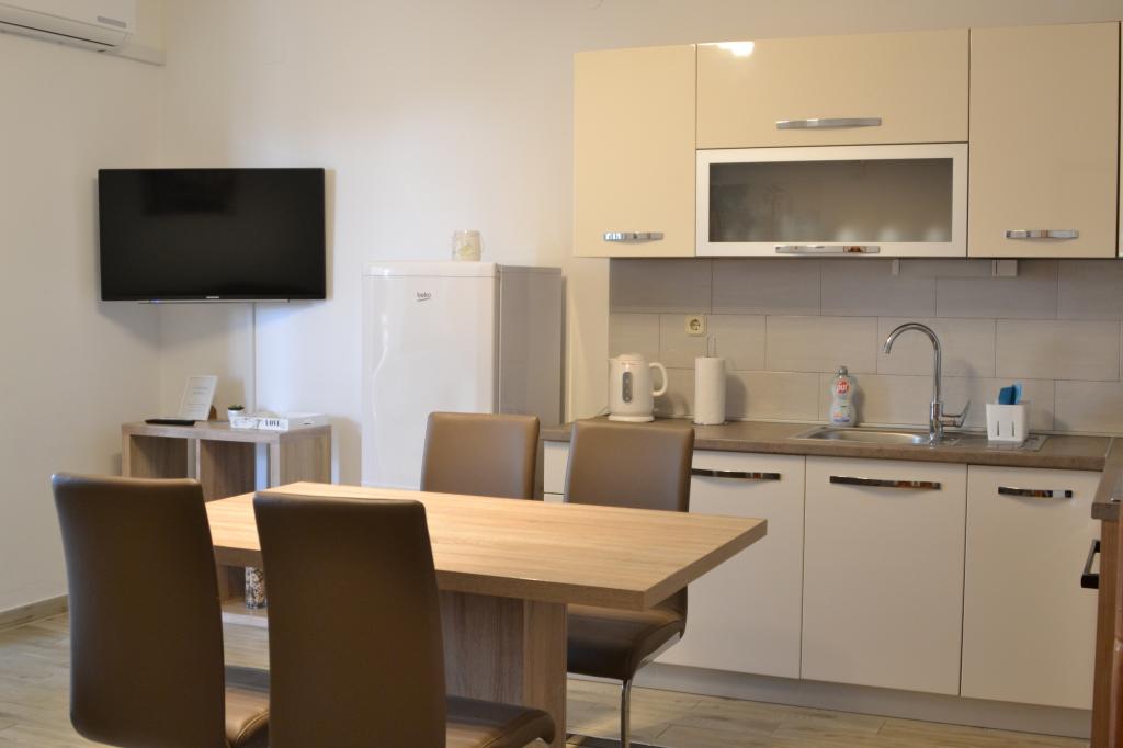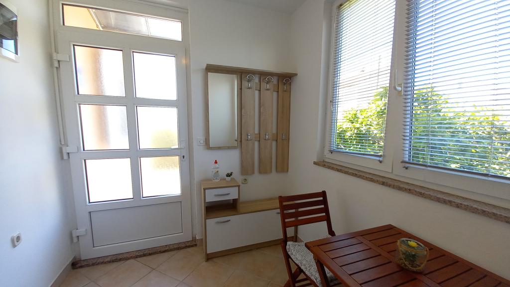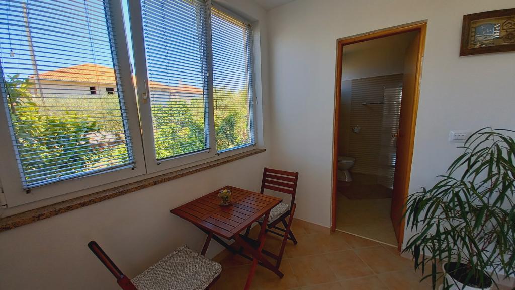 Wygodny apartament dla 3 osób. Znajduje się na parterze domu jednorodzinnego z własnym wejściem. Lokalizacja jest cicha, blisko plaży i centrum miasta. Wewnątrz mieszkania znajduje się sypialnia z 2 łóżkami - (160x200 cm) i (90x200 cm), łazienka oraz pokój zw pełni wyposażoną kuchnią, jadalnią i sofą. Dostępny jest bezpłatny bezprzewodowy dostęp do Internetu, a także klimatyzacja, telewizor, pralka, suszarka do włosów, suszarka do włosów, żelazko, kuchenka mikrofalowa, czajnik. Parking znajduje się przed budynkiem i jest bezpłatny. Spacer do najbliższej plaży zajmuje około 10 minut. Bliskość dworca autobusowego to 2 minuty spacerem, a do centrum miasta 10 minut jazdy samochodem.