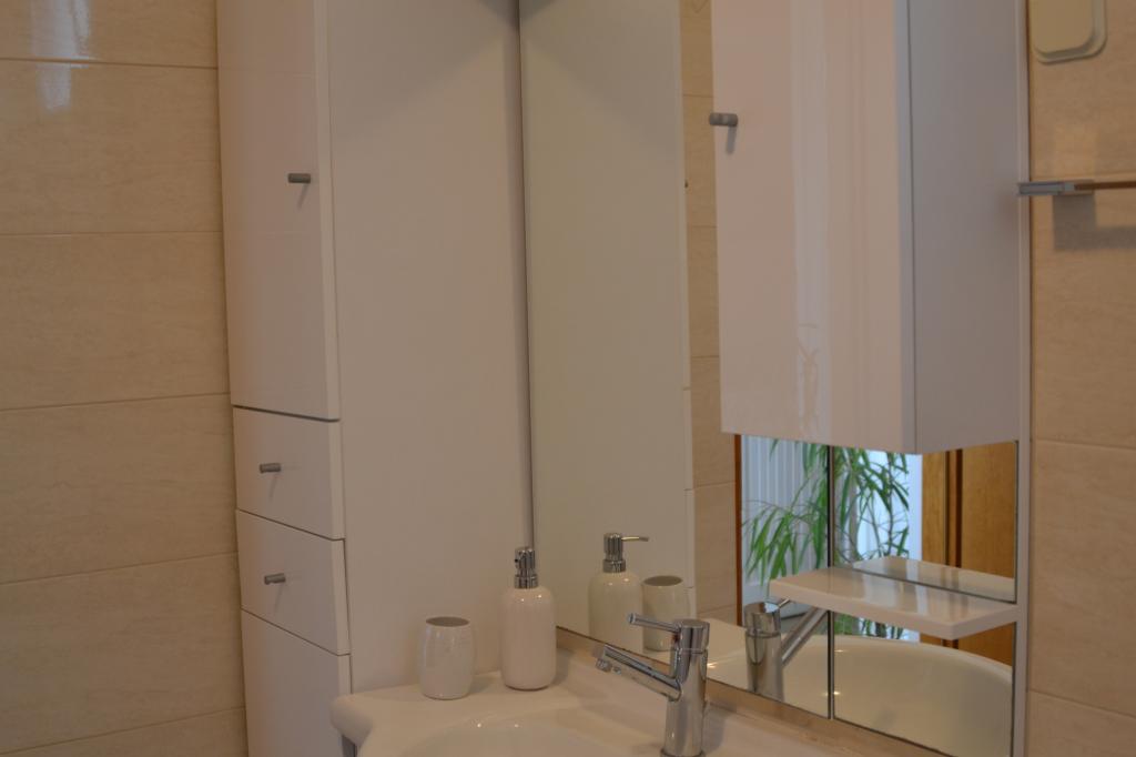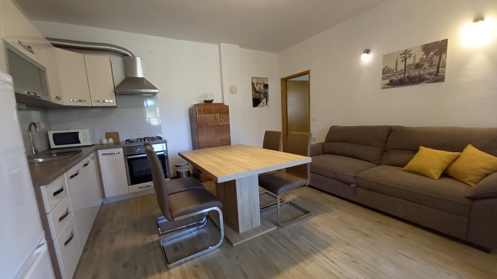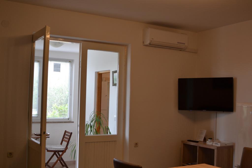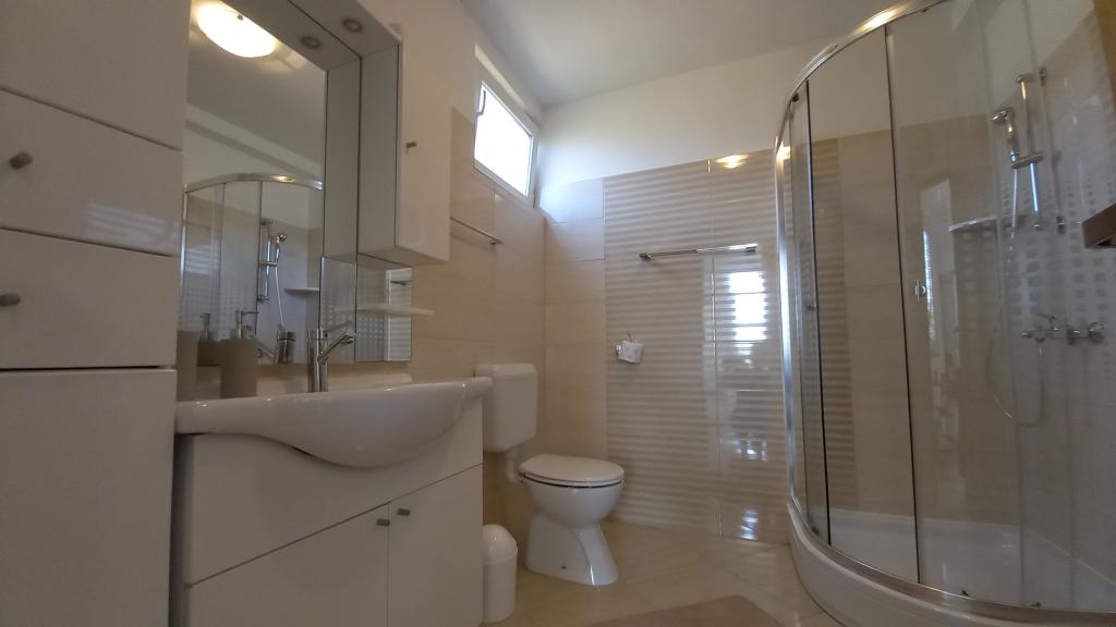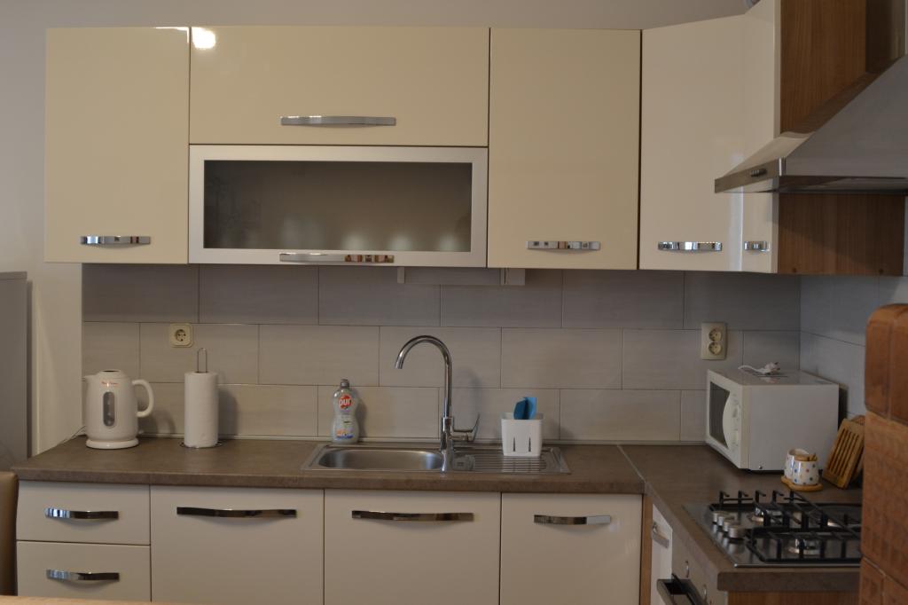Wygodny apartament dla 3 osób. Znajduje się na parterze domu jednorodzinnego z własnym wejściem. Lokalizacja jest cicha, blisko plaży i centrum miasta. Wewnątrz mieszkania znajduje się sypialnia z 2 łóżkami - (160x200 cm) i (90x200 cm), łazienka oraz pokój zw pełni wyposażoną kuchnią, jadalnią i sofą. Dostępny jest bezpłatny bezprzewodowy dostęp do Internetu, a także klimatyzacja, telewizor, pralka, suszarka do włosów, suszarka do włosów, żelazko, kuchenka mikrofalowa, czajnik. Parking znajduje się przed budynkiem i jest bezpłatny. Spacer do najbliższej plaży zajmuje około 10 minut. Bliskość dworca autobusowego to 2 minuty spacerem, a do centrum miasta 10 minut jazdy samochodem.