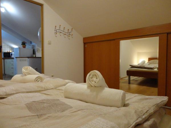 Apartament Melanie znajduje się w doskonałej lokalizacji w centrum miasta Zadar, gdzie wszystkie czynności. Mieszkanie znajduje się w prywatnym budynku z własnym wejściem. Na pierwszym piętrze mieszka właścicieli, podczas gdy mieszkanie na poddaszu budynku, który sprawia, że jest wyjątkowy i dlatego bardziej przyjemny pobyt. Apartament Melanie znajduje się w punkcie, w którym wszystko można zwiedzać w kilku krokach. Zatem PKS 7 minut pieszo, wielkie miasto plaża Kolovare 9 minut pieszo, a starego miasta i wszystkich zabytków Zadar tam tylko 15 minut. Ponadto, w pobliżu dużego centrum handlowego biurze, Rynek, Rynek, szpitali i post. W pobliżu apartamentów znajdują się wolne i darmowe miejsca parkingowe. Mówiąc najprościej Przebywanie w mieszkaniu Melani wszystko co nadepnąć na miejscu.