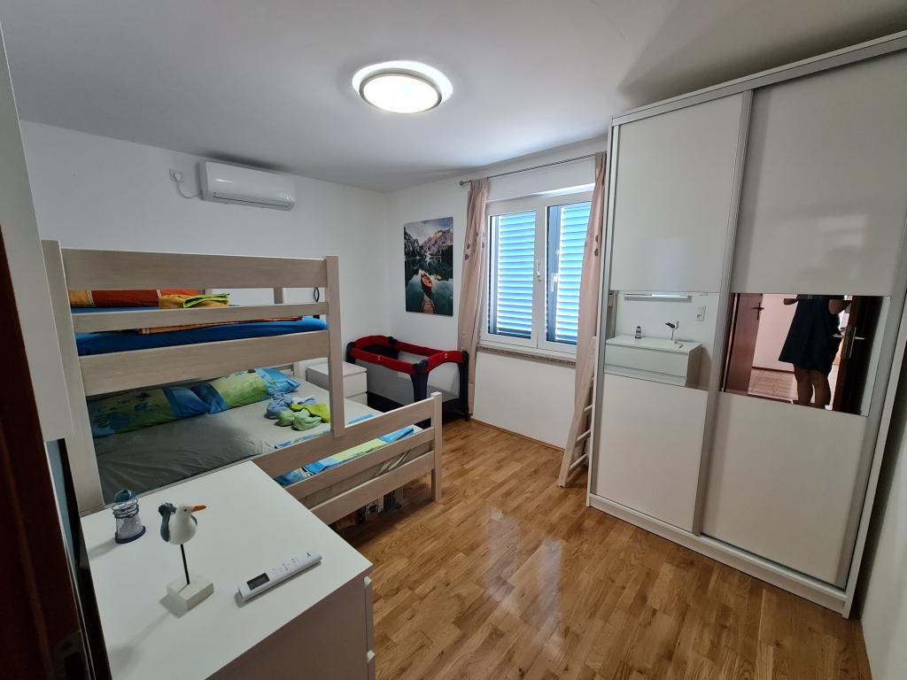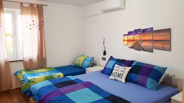 Mieszkanie znajduje się w spokojnej okolicy, 40m od plaży. Ma powierzchnię 140m2 z 3 sypialniami, 1,5 łazienkami, kuchnią, salonem oraz dwoma tarasami z widokiem na morze. Jest świetny dla dużych rodzin lub 2 rodzin, które nie mają nic przeciwko mieszkaniu razem i chcą trochę zaoszczędzić. Świetnie sprawdzi się również dla młodych par, które chcą miło spędzić czas. Jest wystarczająco wygodny dla 10 osób. Jeśli potrzeba ich więcej, wszystko jest możliwe :) Mieszkanie znajduje się na piętrze domu na zdjęciu, więc widok jest piękny. Apartament wyposażony jest w: TV, satelitę, odtwarzacz DVD, klimatyzację w każdym pokoju, zmywarkę i pralkę. W apartamencie można bezpłatnie korzystać z bezprzewodowego dostępu do Internetu. W ogrodzie znajduje się grill i stół do tenisa stołowego. Parking jest dostępny na podwórku. Nie mieszkamy w domu, więc głównie będziesz sam. :)
