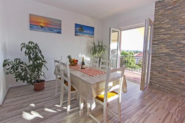W pełni wyposażony apartament, odnowiony w tym roku z tarasem i widokiem na morze. Apartament znajduje się w Diklu, turystycznej części miasta, niecałe 5 minut spacerem od plaży, przy cichej ulicy, kilka minut spacerem od klubów. Na plaży znajdują się obiekty rozrywkowe (zajęcia morskie) W pobliżu znajdują się sklepy, apteka, bank, stacja benzynowa, restauracje. Dworzec autobusowy znajduje się niecałe 5 minut spacerem od domu. Duży apartament na 2 piętrze ma 3 sypialnie, łazienkę i toaletę, kuchnię i przestronny salon z balkonem i widokiem na morze. Mniejszy aparman znajduje się na parterze, odpowiedni dla 2 osób, posiada kuchnię, łazienkę i pokój. Zawiera klimatyzację, telewizor, internet.