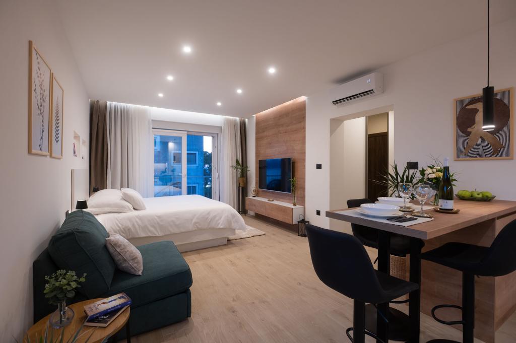 Nasz pobyt w tym apartamencie był naprawdę niezwykły. Lokalizacja jest idealna - położony w zacisznym miejscu, tuż przy morzu, a odległość od centrum to zaledwie pół godziny przyjemnego spaceru wzdłuż wybrzeża. Mieszkanie jest nieskazitelnie czyste i wyposażone we wszystko, co potrzebne do przyjemnego pobytu. Gospodarze są niezwykle przyjaźni i gościnni i dali nam świetne rekomendacje na temat tego, co warto odwiedzić i gdzie zjeść. Szczególnie chcemy pochwalić właściciela, który jest wspaniały i niezwykle łatwo się z nim komunikował. Najbardziej podobało nam się siedzenie na balkonie i picie porannej kawy z pięknym widokiem na morze. W pobliżu znajduje się mały sklep, zaledwie kilka minut spacerem, a do Lidla można dojść w około 20 minut. Również w bezpośrednim sąsiedztwie znajdują się dwie mniejsze plaże, do których można dojść w dziesięć minut pieszo, a także kilka restauracji i kawiarni, w których można zjeść posiłek lub napić się kawy. Podsumowując, było to idealne zakwaterowanie na relaksujące wakacje i zdecydowanie polecamy je każdemu, kto szuka spokojnego i przyjemnego pobytu nad morzem.
