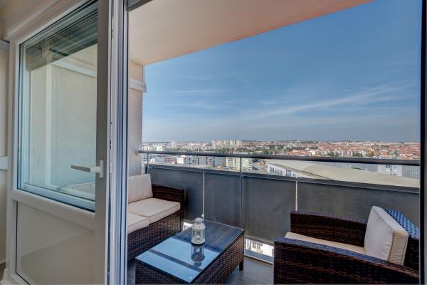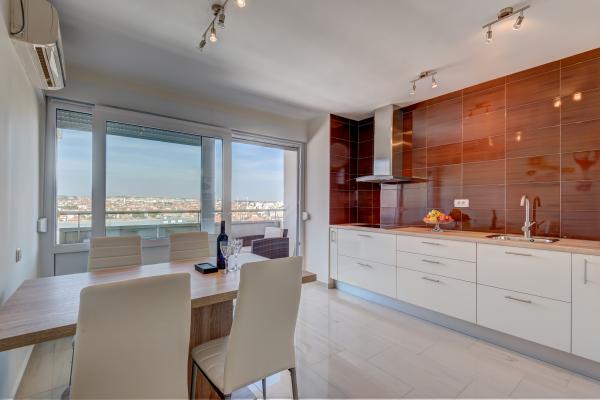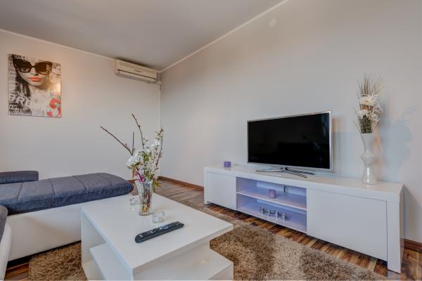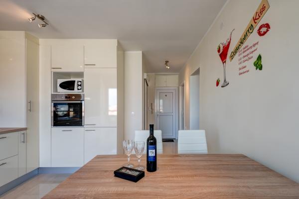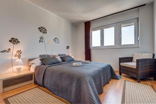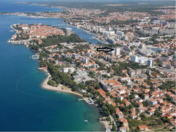 Mieszkanie znajduje się w budynku na 12 piętrze (ostatnim piętrze) od zabytkowego centrum Zadaru i głównej plaży Kolovare. W pobliżu centrum miasta i plaży Kolovare. W bezpośrednim sąsiedztwie dworca kolejowego i autobusowego, centrum handlowe, poczta i szpital. Lotnisko znajduje się 9 km od hotelu. Apartament jest klimatyzowany i całkowicie odnowiony i nowoczesne umeblowanie. Składa się z sypialni z widokiem na morze i półwysep, kuchnia i jadalnia, pokój dzienny z widokiem na morze i półwysep, kupoaonice i balkonem. Sklep spożywczy znajduje się w odległości 2 minut spacerem lub 50 m od apartamentu. Główna ulica miasta znajduje się zaledwie 10 minut spacerem od apartamentu. Słynne Organy Morskie to około 20 minut spacerem lub 1, 5 km. W apartamencie znajduje się zmywarka, pralka / suszarka do towarów, mikrofalówka, ekspres do kawy, toster, czajnik elektryczny, suszarkę do włosów, żelazko, sejf, klimatyzacja, SMART TV, internet wi-fi, winda w budynku.