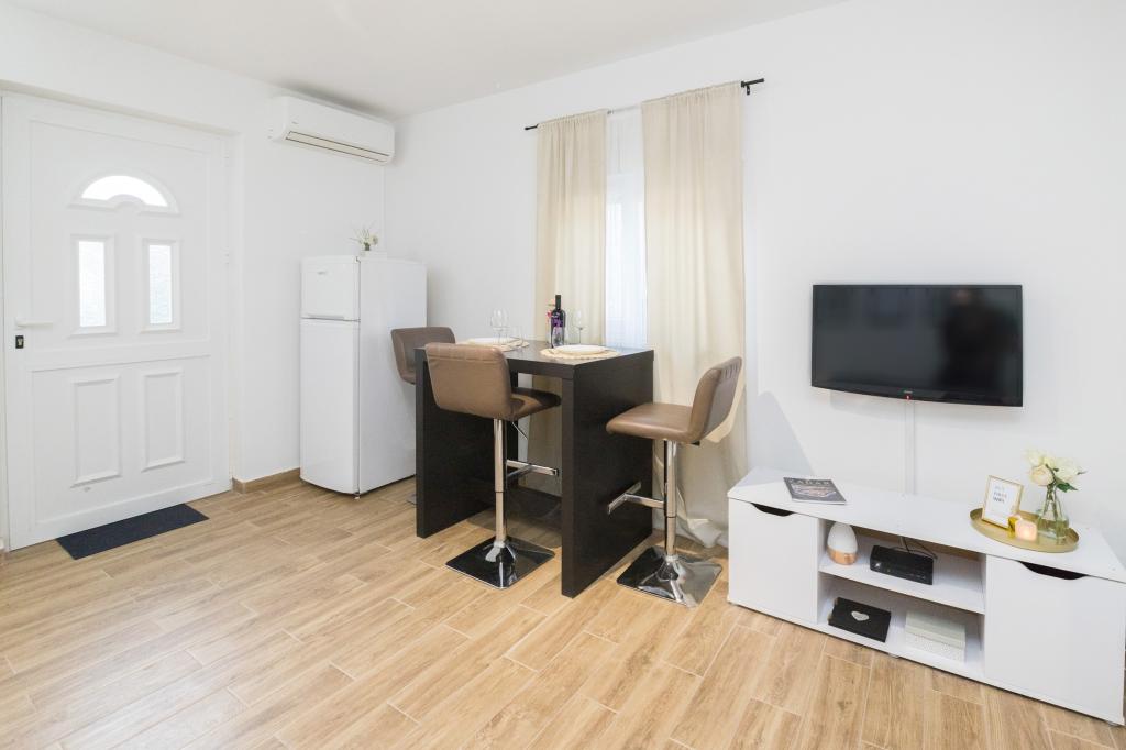 Apartament Vers to całkowicie nowo umeblowane mieszkanie urządzone z wielką miłością. Składa się z sypialni, kuchni, jadalni, salonu i toalety. Przed wejściem znajduje się dziedziniec oraz możliwość skorzystania z komina. Lokalizacja Melady jest idealna ze względu na wyjątkową bliskość centrum, plaży, sklepów, banków, aptek, rynków, targów rybnych oraz centrum sportowo-rekreacyjnego Višnjik.
