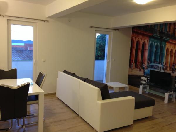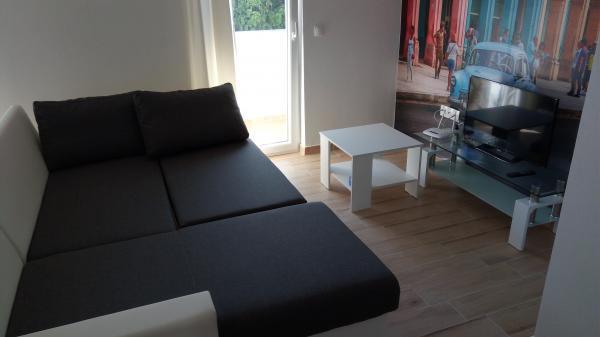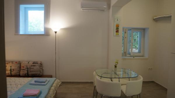 APP 3 1 znajduje się na 2 piętrze - 40 m2 15 m2 balkon z widokiem na morze. Mieszkanie ma jedno podwójne i jeden pojedynczy pokój, duża kuchnia, pokój dzienny (rozkładana sofa dla jednej lub dwóch osób), prysznic / WC, suszarkę do włosów. W kuchni znajduje się zestaw naczyń, czajnik elektryczny, toster i ekspres do kawy, lodówka zamrażarka, piekarnik, płyta (3 gazu i bieżącej 1) zmywarki. Klimatyzacja, SAT / TV, WiFi APP 2 2 na 1. piętrze - 42 m2 8 m2 balkon z widokiem na morze. Apartament ma jedną sypialnię, duży salon z rozkładaną sofą dla dwóch osób, prysznicem / WC, suszarką do włosów. W kuchni znajduje się zestaw naczyń, czajnik elektryczny, lodówka zamrażarka, płyta (3 gazu i bieżącej 1) pieca. Klimatyzacja, SAT / TV, WiFi Apartament dla dwóch osób znajduje się na parterze - 29 m2. W kuchni, komplet naczyń, czajnik elektryczny, lodówka z zamrażarką, piekarnik, płyta szkła, zmywarki. Zgodnie z prawem chorwackim w listopadzie