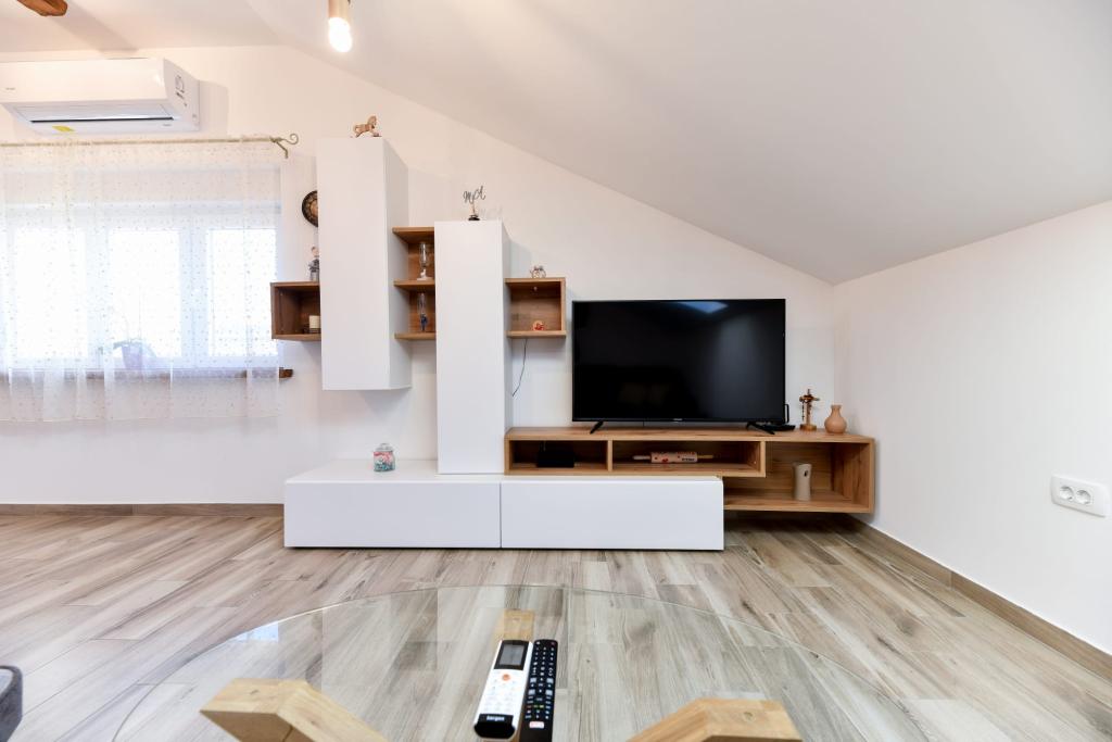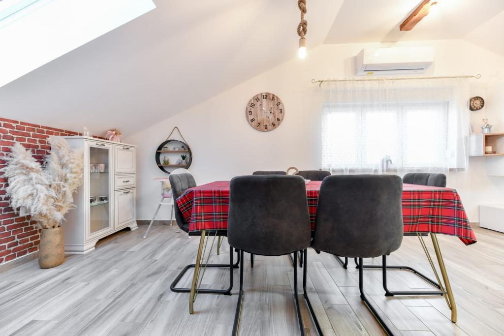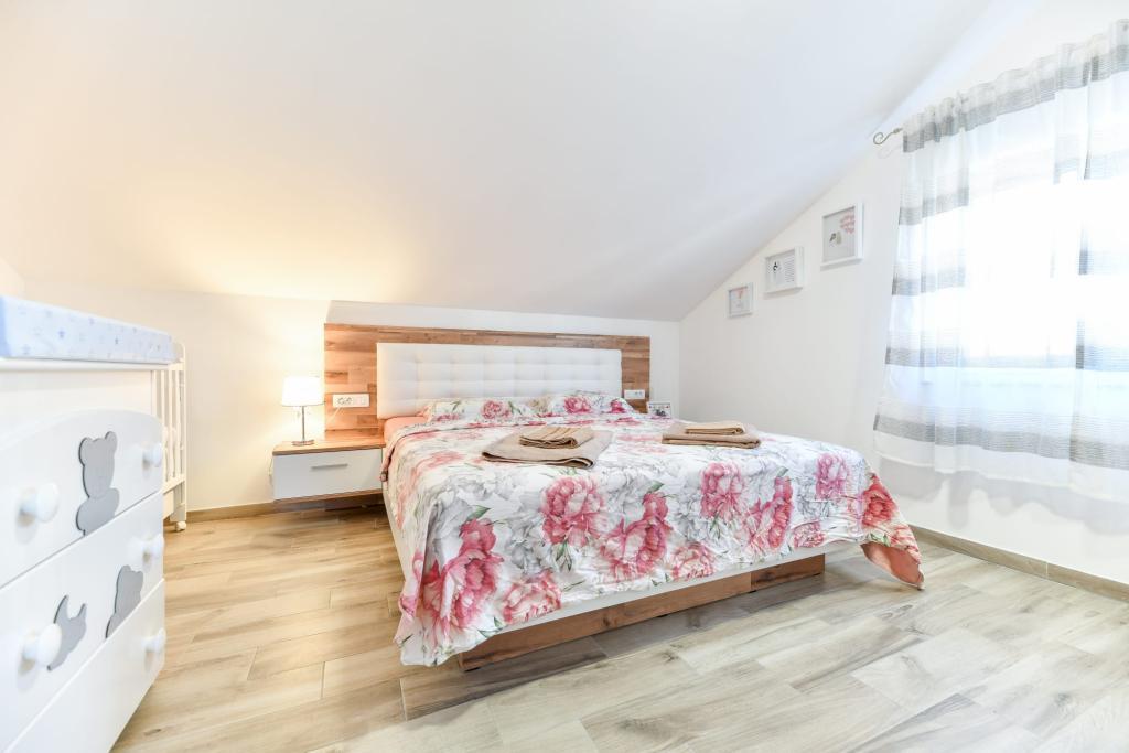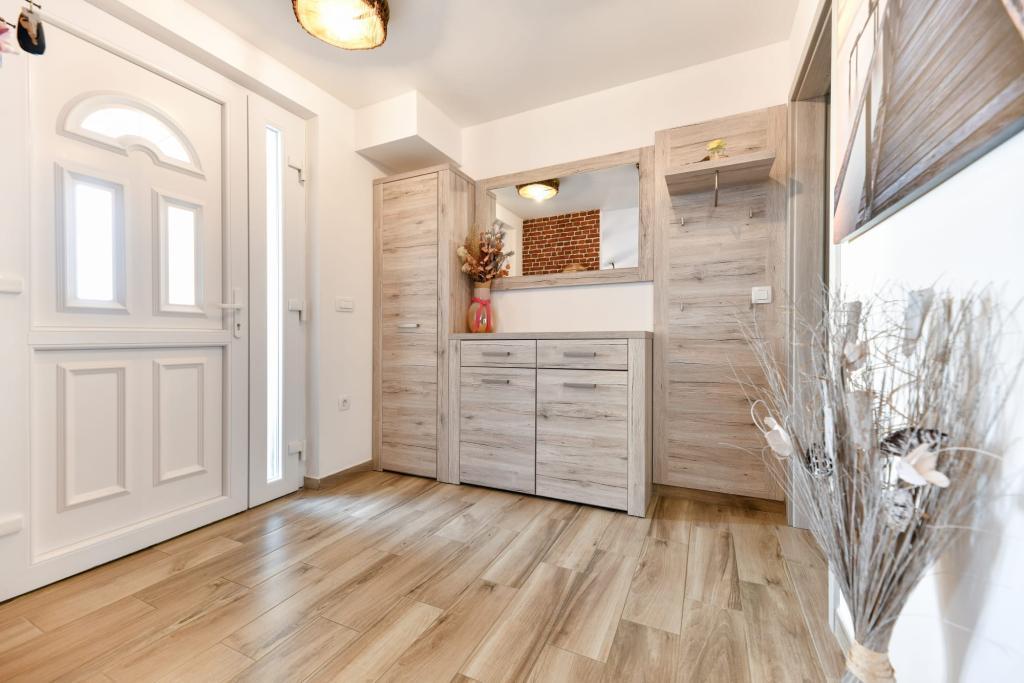 Apartament CVITA znajduje się w rodzinnym domu w cichej i podwyższonej okolicy, idealny dla par i rodzin z dziećmi. W pełni i nowocześnie wyposażony apartament składa się z dwóch sypialni, łazienki oraz dużego salonu, kuchni i jadalni z widokiem. Mieszkanie jest komfortowe, klimatyzowane, a taras idealny do wypicia ulubionego drinka z widokiem i sielskim zachodem słońca. W apartamencie znajduje się grill na świeżym powietrzu, z którego można korzystać. Parking znajduje się na podwórku przed domem. Dostępne jest również bezpłatne WiFi i telewizor Smart TV. W bezpośrednim sąsiedztwie znajduje się sklep, sklep spożywczy, bank, poczta i inne udogodnienia. Dojazd samochodem do plaży Kolovare zajmuje 5 minut. Czekamy na Twój przyjazd.