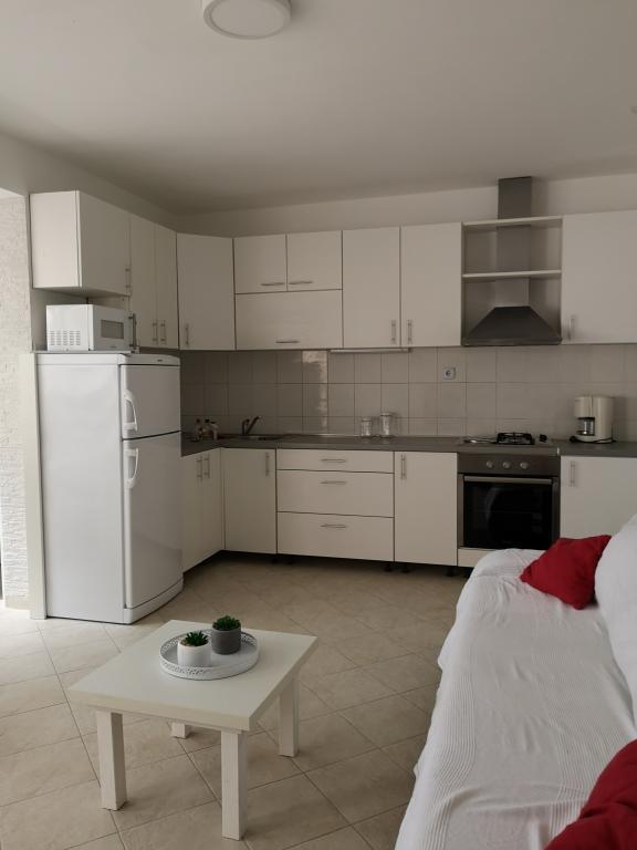 Mieszkanie, które wybraliśmy, zaskoczyło przestronnością i możliwościami. W rzeczywistości mieszkanie to cały dom z własnym miejscem parkingowym. Właściciel mieszka w sąsiednim budynku, jeśli czegoś potrzebujesz - pomoc jest tuż obok, ale nie zauważysz obecności sąsiadów. Ukochana plaża Borik oddalona jest od apartamentu o 1 km. Stare miasto Zadar jest około 3 km, ale jest tak tłoczno... jeśli chcesz posiedzieć spokojnie na obiad, możesz znaleźć miłą restaurację Roko - 350 m od tej kamienicy. Chyba że chcesz skorzystać z zaplecza kuchennego tego mieszkania i urządzić sobie restaurację w domu.