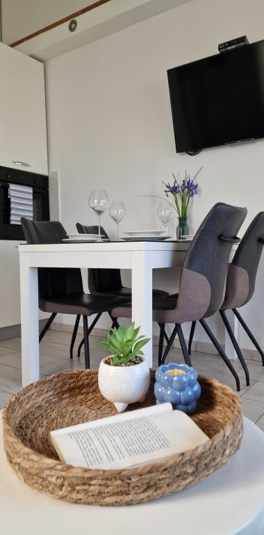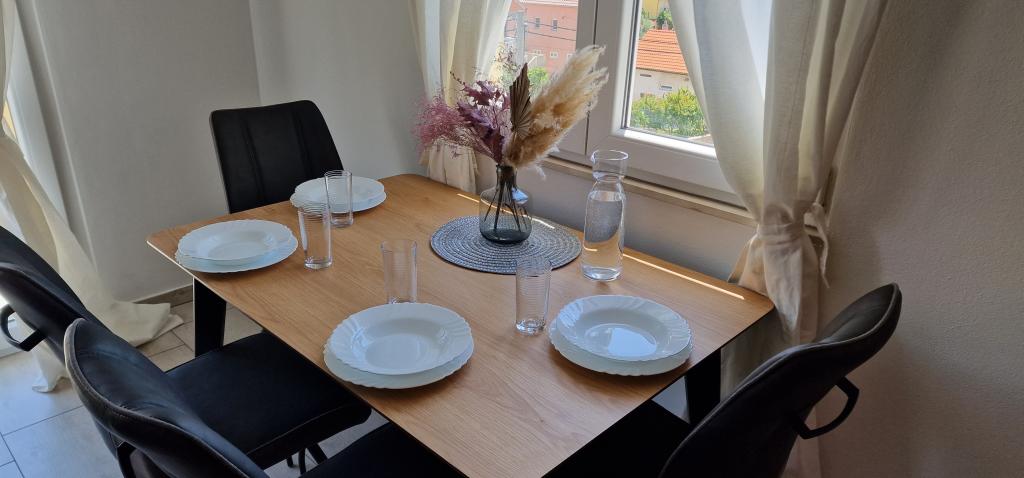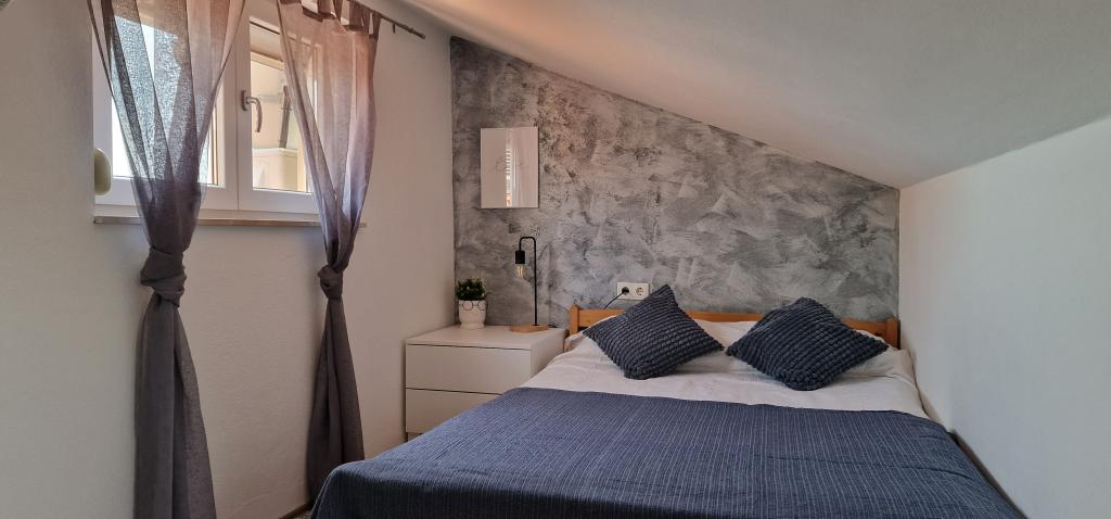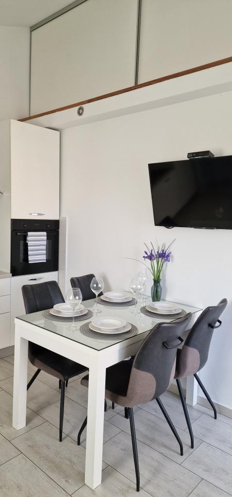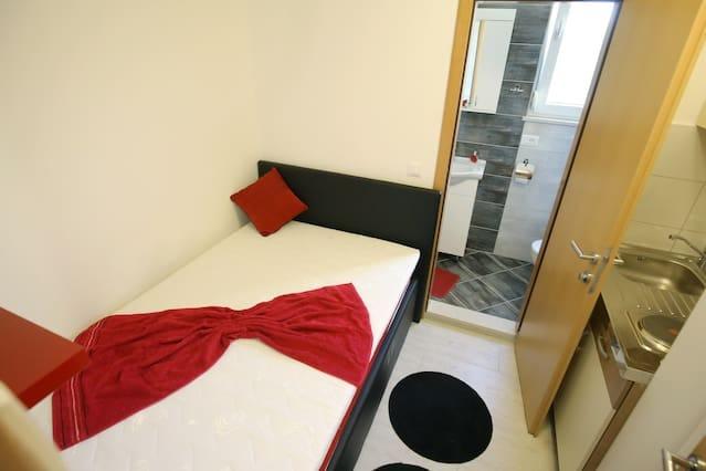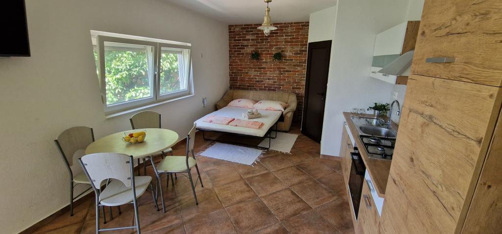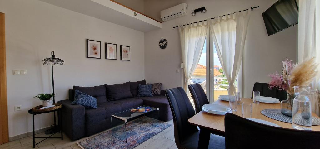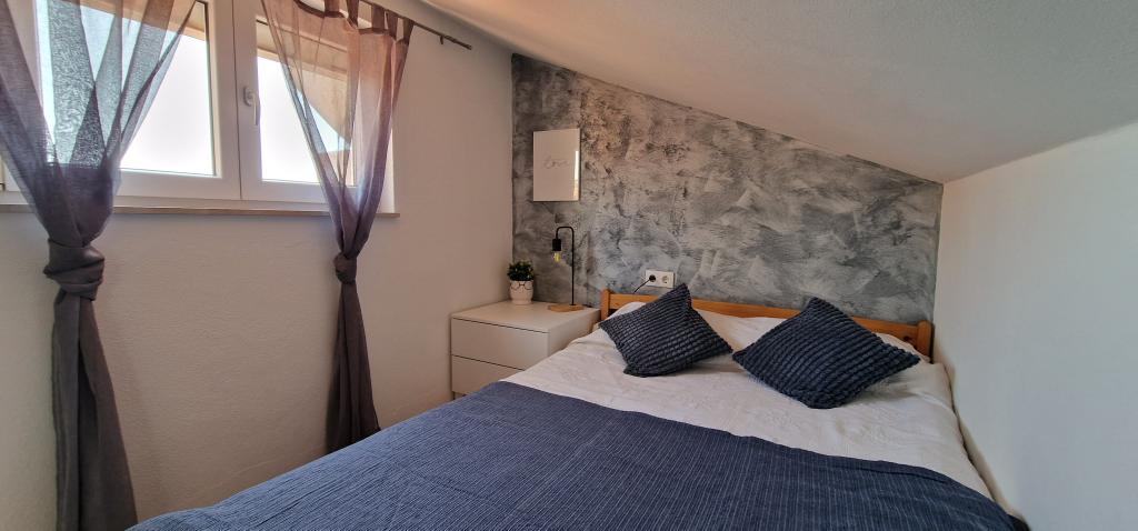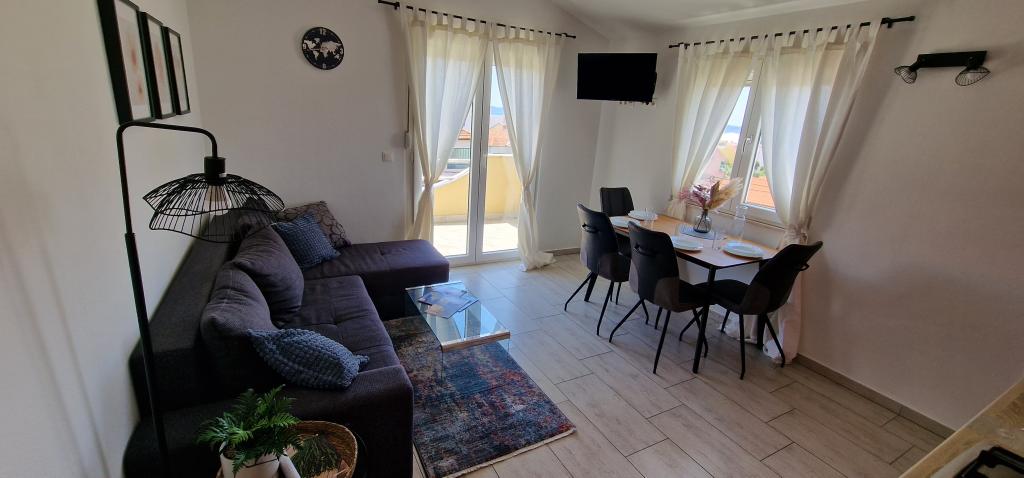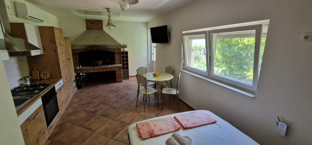 Apartamenty Iva znajdują się w lekko podwyższonym miejscu, w nowoczesnej willi drugi 5 km od Starego Miasta. W ofercie, oprócz bezpłatnym bezprzewodowym dostępem do Internetu oraz prywatny parking, w 2 więcej mieszkań znajdziesz stylowe pokoje z klimatyzacją w każdym z nich (3 Klimat na osobę), pokój dzienny / kuchnia urządzona w stylu i telewizor LCD, przestronny taras, gdzie można odpocząć i cieszyć się widokiem, nowoczesną łazienkę z prysznicem, itp Większe apartamenty składają się z dwóch sypialni, podwójne łóżko w jednym i łóżka dla 1 osoby, która rozciąga się w łóżko dla 2 osób w drugiej sypialni. Sofa w salonie, jeśli to konieczne, być przekształcony w łóżko dla 2 osób. Kuchnia wyposażona jest we wszystkie niezbędne do komfortowego wypoczynku: lodówka, piekarnik, zmywarka (1) z łazienką ... Studio jest mniejsza przestrzeń 25m2, która obejmuje 2 piętra i jest przystosowany zakwaterowanie dla 2 osób. Składa się z 1 sypialni z podwójnym łóżkiem na piętrze oraz kuchnią i łazienką na dole. Wszystkie apartamenty zostały niedawno odnowione.