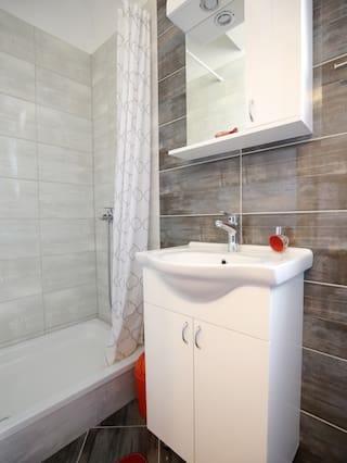 Opłata jest wliczone w cenę.Poza parking oraz bezpłatny WiFi niepełnosprawnych oferowane są również bezpłatne korzystanie z pralek. Apartamenty znajdują się 5min jazdy do starego miasta, a 6-7min jazdy do plaży. Oferujemy również możliwość wypożyczenia łodzi, z lub bez kapitana i organizowanie podróży, jak również organizację prywatnych transferów do / z lotniska, dworca autobusowego itp Z naszych kontaktów w biurze podróży, wycieczki do Kornati, wodospady Krka i Plitvice może być również zorganizowane. Oprócz chorwacki, mówi płynnie po angielsku, czy jest coś możemy pomóc, a jeśli czegoś nie potrzeba, prosimy o kontakt z nami w każdej chwili! :)