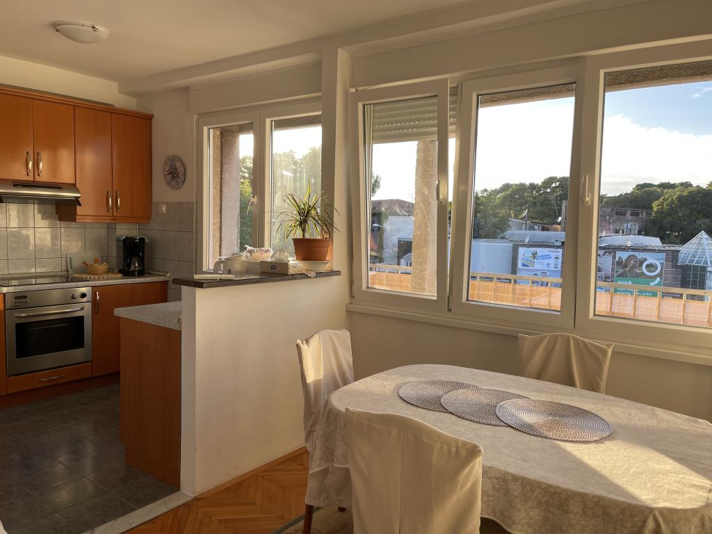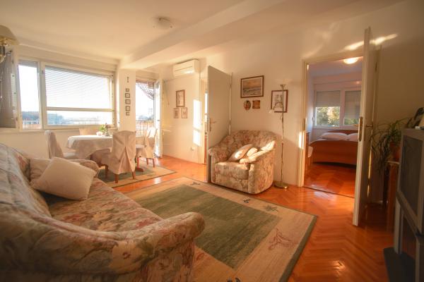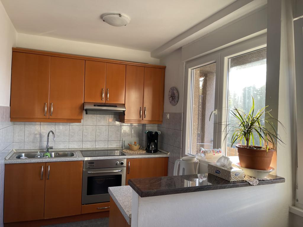 Mieszkanie znajduje się blisko centrum miasta i plaży, widok na morze, 3 piętro. Powierzchnia kwatery to 60m2, składa się z 2 sypialni, jedna z 2 osobnymi łóżkami /90X200/, a druga z łóżkiem małżeńskim /160X200/. W salonie kanapa dla piątej osoby. Kuchnia wyposażona: mikrofalówka, ekspres do kawy, czajnik, piekarnik. W łazience znajduje się prysznic i pralka, salon i jedna sypialnia mają wyjście na taras.Cena wynajmu obejmuje pościel, ręczniki, WI-FI, opłatę klimatyczną