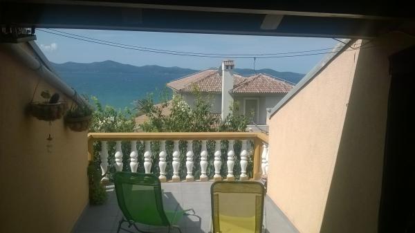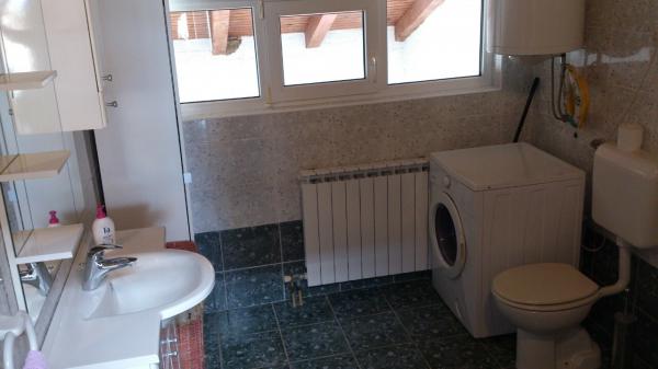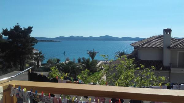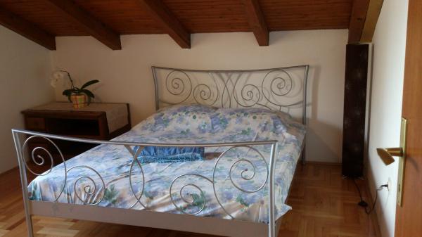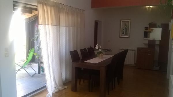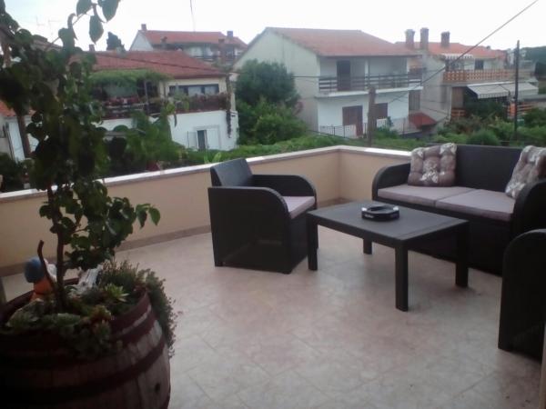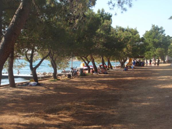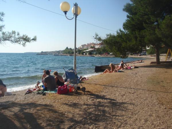 Apartament znajduje się na poddaszu domu, 125 m2, około 50 m od morza. Ma trzy sypialnie, łazienka, duży salon z kominkiem, klimatyzacja, w pełni wyposażona kuchnia i dwa duże balkony. W razie potrzeby, istnieje również łóżeczko i krzesełko dla dziecka. Parking dla samochodów na podwórku przed apartamentów, zwierzęta są mile widziane.