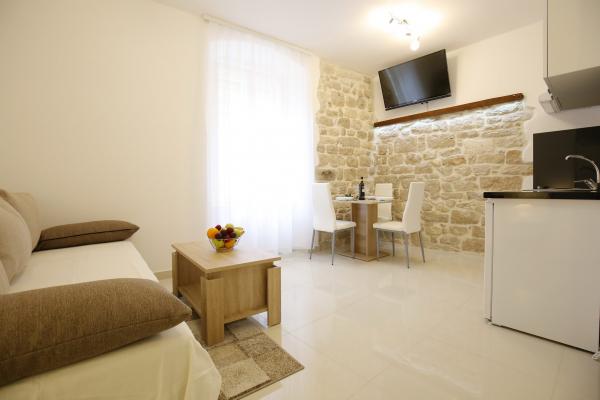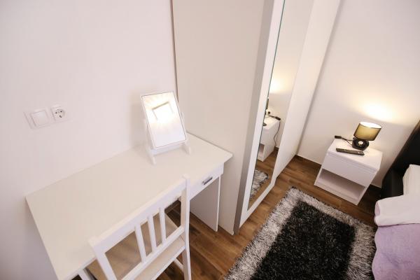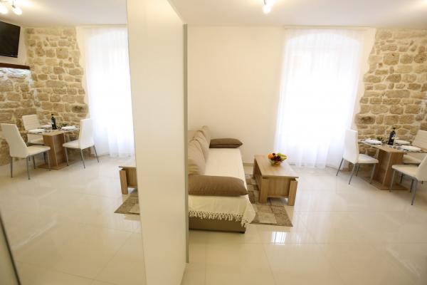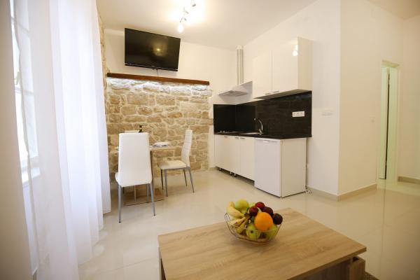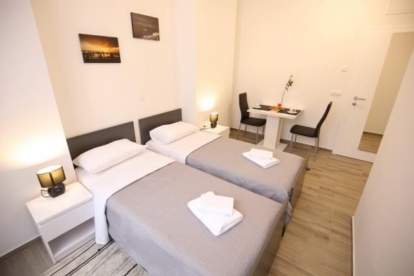 Miejsca Zadar Apartamenty są usytuowane w samym centrum Starego Miasta, zaledwie 100 metrów od wieży kapitana i 60 metrów od Placu Ludowego, podczas gdy narząd morskiej znajduje się zaledwie 10 minut na piechotę. Darmowy parking znajduje się 8 minut na piechotę. Jest on wyposażony w kuchni dwa SMART klimatyzacja telewizor w pełni funkcjonalny, z widokiem zabytków miasta, kąpiel zawierającą suszarka do włosów, papier toaletowy, szampon, mydło w płynie, ręczniki duże i małe, biurko, szafę i podwójne łóżko w sypialni. Studio wyposażone jest w pełni funkcjonalnym kuchnia, klimatyzacja, jadalnia, Smart TV 43 \ przekątnej, część wypoczynkową oferuje sofę przekształca się w podwójne łóżko 160x200, z widokiem zabytków miasta oraz w pełni wyposażona łazienka. Pokoje wyposażone są w łóżka pojedyncze, które można łatwo połączyć w jeden dwuosobowy bez przestrzeni pomiędzy materacami, klimatyzację, szafę, stolik z dwoma krzesłami, lodówką i czajnikiem oraz łazienkę i Smart TV.