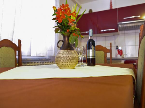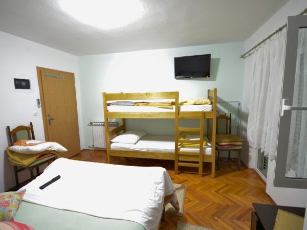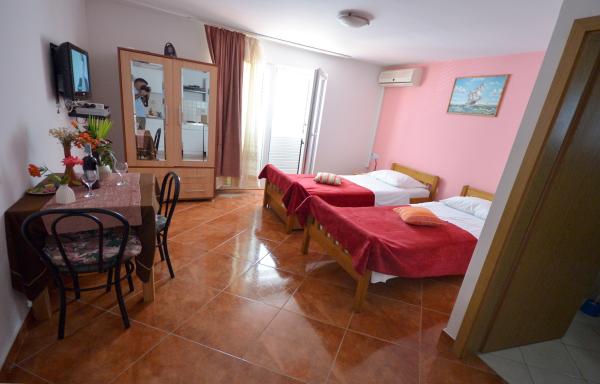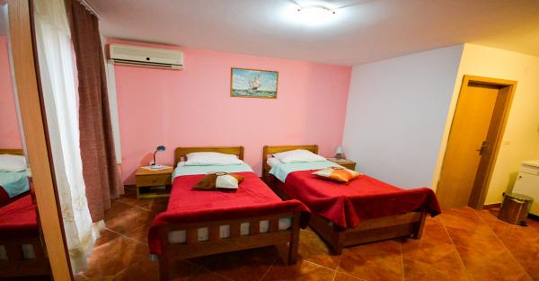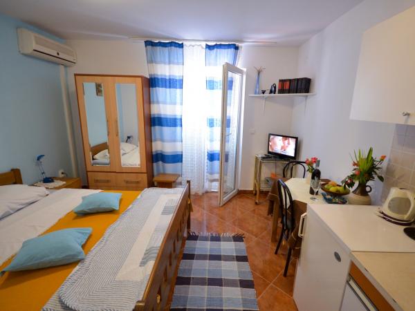 Villa Nada znajduje się w elitarnej części miasta Zadar, mają 4 dwuosobowe pokoje typu studio, piękne apartamenty superior pokój czteroosobowy ze wspólną łazienką oraz pokój trzyosobowy z aneksem kuchennym i łazienką na korytarzu. Znajdujemy się w odległości 500 metrów od głównego dworca kolejowego i autobusowego, 1000 m od plaży Kolovare, 1500 metrów od zabytkowego centrum miasta i morza i narządów powitanie słońca. Rdzeń jest bardzo bogate w zabytki. Prom 1500 metrów, a lotnisko siedem (7) kilomettara w którym zapewniamy transport przy znacznie niższych cenach niż taksówki. Organizujemy wycieczki do parków narodowych Krka Pplitvička Lakes, Kornati i Paklenica. Nasz cenny zespół będzie upewnić się, że pobyt w naszej willi jest przyjemne i magiczne !!! ZAPRASZAMY !!! Miłej podróży i przyjemny pobyt gdziekolwiek BIL