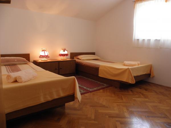 Apartament z balkonem i widokiem na morze Cyfrowa telewizja satelitarna, bezpłatny dostęp do Internetu (WI-FI), bezpłatny parking, klimatyzacja. Dom położony jest w turystycznej części Zadaru (Diklo), około 200 m od morza, plaży, supermarketu, dworca autobusowego. Bilety parkingowe dla naszych gości są bezpłatne i nie jest wymagana rezerwacja (12 miejsc parkingowych). Oferujemy zakwaterowanie w komfortowym apartamencie (4 1) ca. 85m2, 2 sypialnie, kuchnia, łazienka, pokój dzienny, cyfrowa telewizja satelitarna z dostępem do Internetu (WI-FI) i balkon z widokiem na morze. Oferujemy również pokoje z wanną. Pokój dla 2 osób z wanną o rozmiarze ca. 25m2, lodówka, cyfrowa telewizja satelitarna, Wi-Fi, klimatyzacja i część wypoczynkowa na podwórku. Do dyspozycji Gości jest wspólna kuchnia. Pokój 2 1 dla 2-3 osób z wanną, rozmiar ca. 55m2, lodówka, telewizja satelitarna, wi-fi, klimatyzacja i balkon. Dostępna jest również wspólna kuchnia.