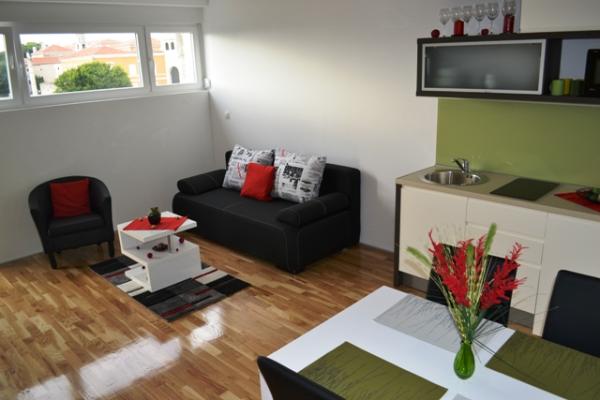 Apartament dla 2 +2 osób Apartament dla 4 osób Apartament dla 2 osób, wszystkie w odległości 15 metrów od Forum i Kościół św. Donat. Dwa z nich mają bezpośredni widok na kościół św Donat, Zadar Riva, 30 metrów od najważniejszych ulic Zadar Kalalarga, natomiast dwa pozostałe mają bezpośredni dostęp do Kalalarga. Nowocześnie wyposażony apartament w samym sercu miasta, na pełne doświadczenie w Zadarze. Jest on wyposażony w telewizję kablową, bezpłatny bezprzewodowy dostęp do Internetu, klimatyzację i nowoczesne - funkcjonalna kuchnia.