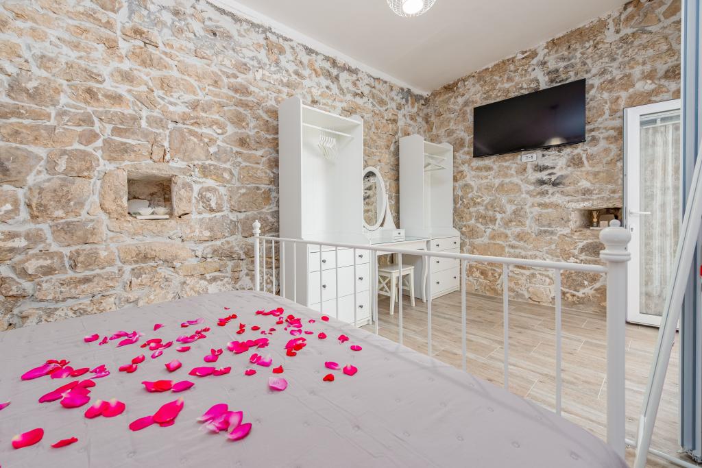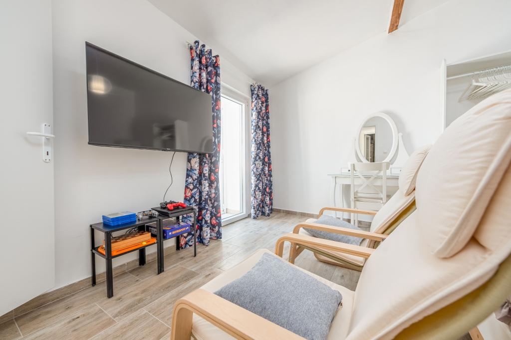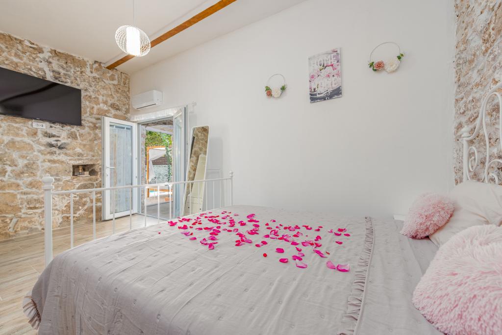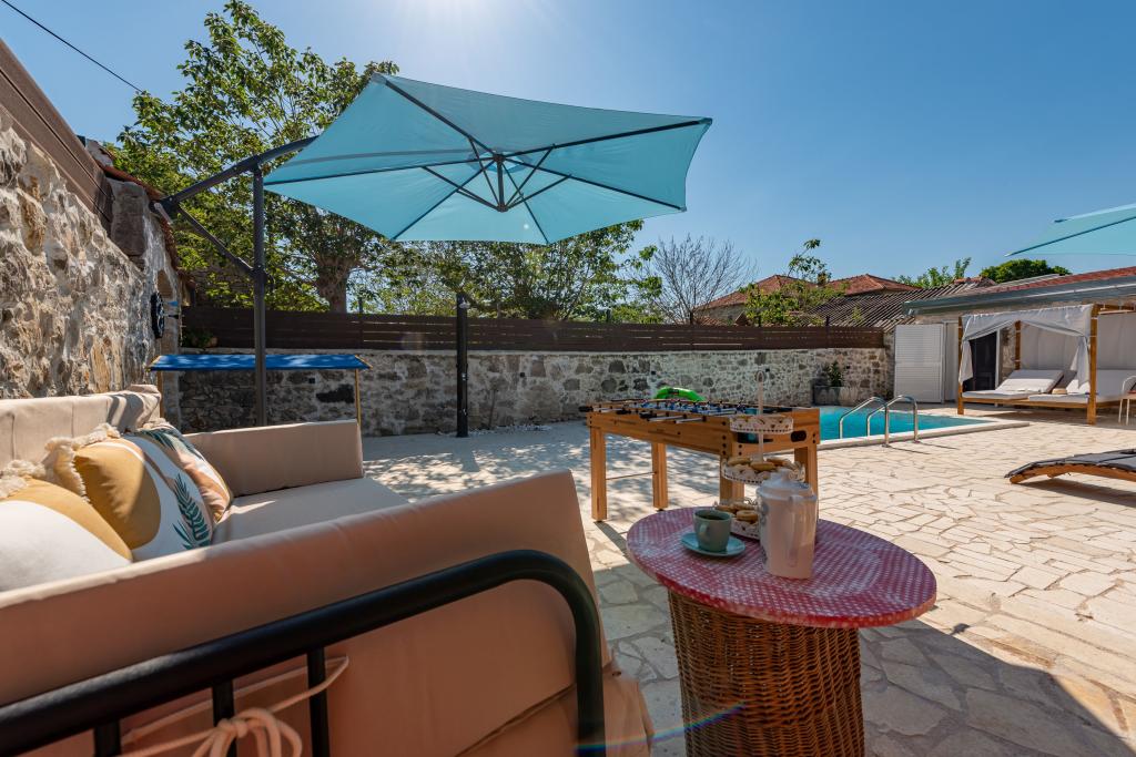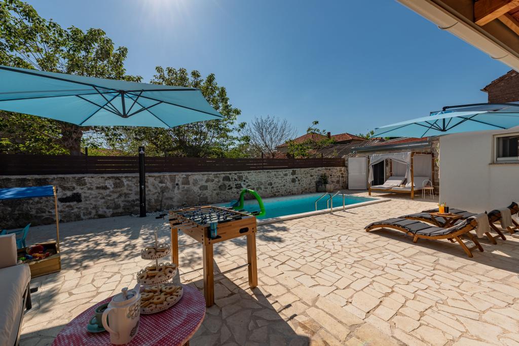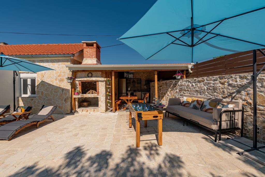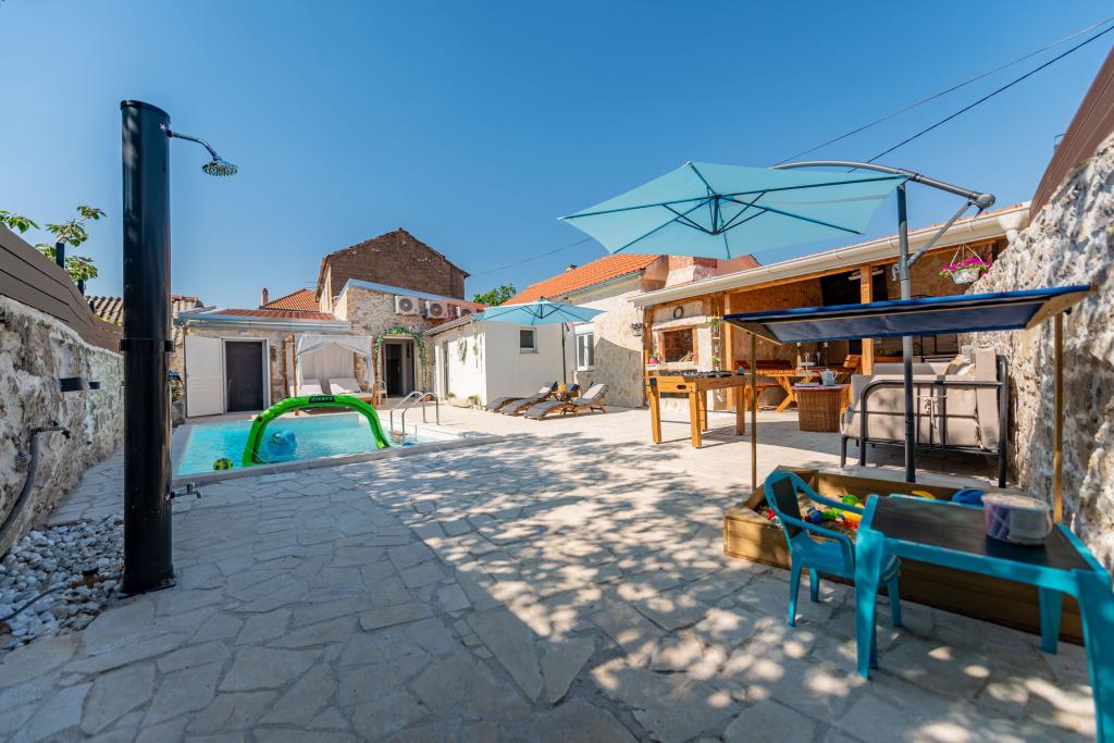 Dom Filotea, zbudowany z kamienia 80 lat temu i odnowiony w 2024 roku, znajduje się w Zemunik Donji. Przestrzeń wewnętrzna ma 80 metrów kwadratowych, a podwórko 150 metrów kwadratowych. Podwórko otoczone jest starym kamiennym murem, który zasłania widoki przechodniów i pozwala odpocząć w spokoju i prywatności. Cała nieruchomość jest tylko Twoja, nie ma bezpośrednich sąsiadów, właściciel mieszka w domu 200 metrów od Ciebie. Basen zewnętrzny, PlayStation 4, 4 telewizory Smart TV, piłkarzyki, rzutki, piaskownica, kuchnia wewnętrzna i zewnętrzna, 3 sypialnie, 3 klimatyzatory, 3 łazienki, prywatny parking z 3 miejscami i gospodarz, który jest zawsze do Twojej dyspozycji, gwarantują Ci wspaniałe wakacje. Zapraszamy!