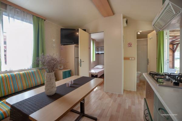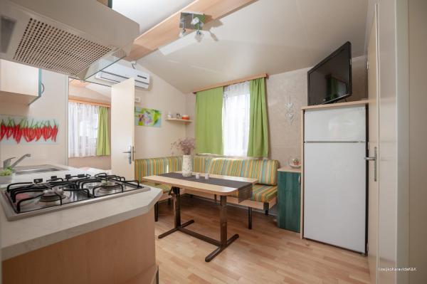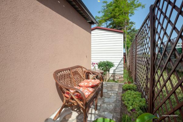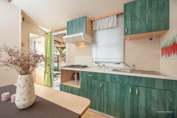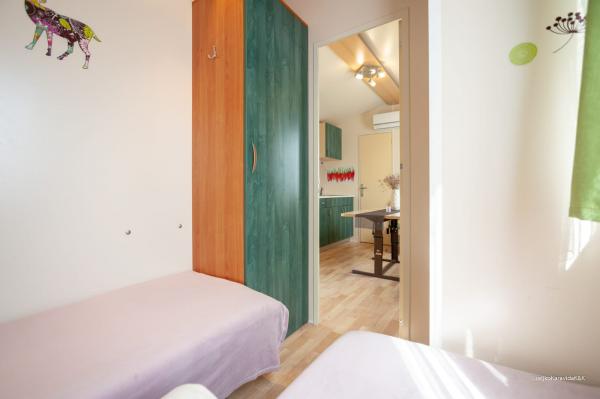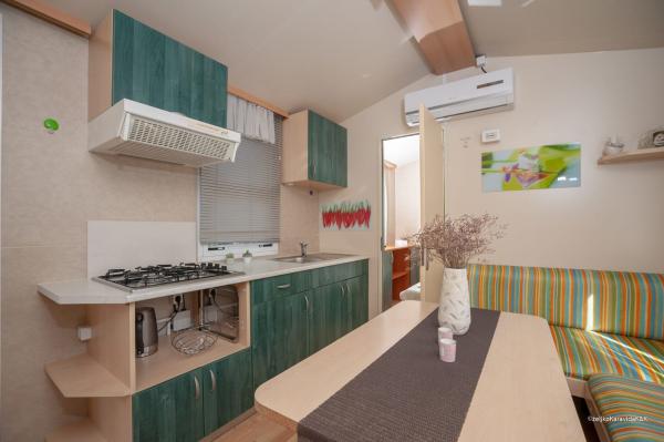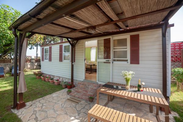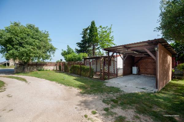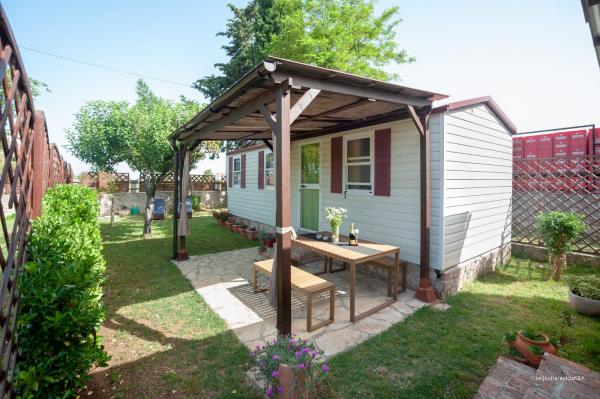 Mobile home znajduje się w podwórzu rodzinnego domu, na przedmieściach miasta Zadar w cichym otoczeniu. Dostęp jest od głównej drogi Zadar-Razanac, zaledwie kilka minut od centrum miasta i najbliższej plaży miasta. Dom otoczony jest przez drewniane panele dekoracyjne z najszybciej jak zdał sobie sprawę, intymności, a także niechciane widoki. Dom położony jest w małym sadzie i pięknym trawnikiem na drugim końcu właścicielami stoczni. Jako część domu i na podwórku jest grill, mały drewniany domek do zabaw dla dzieci, prysznic solarny, drewniane meble na tarasie siedzenia, małej drewnianej ławce usiąść i odpocząć przy szklance ulubionego napoju i książki, i garaż dla samochodu, więc samochód nie w słońcu lub deszczu. Od domku otoczony ozdobnym drewnianym ogrodzeniem dziecku swobodę podczas gry w dom i podwórko domach jedno wooden dzieci, a rodzice bezpieczeństwa i spokoju, podczas gdy w tym samym czasie nie ma niebezpieczeństwa zranienia.