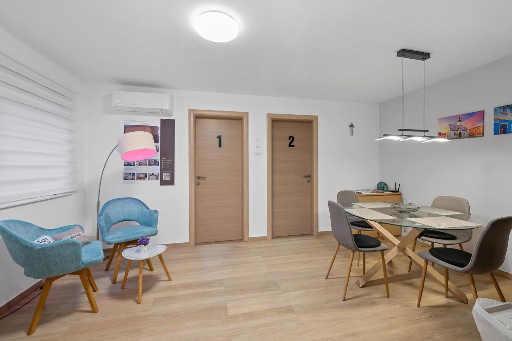 Ten nowoczesny i przytulny apartament, niedawno odnowiony, został zaprojektowany z naciskiem na wygodę, dzięki czemu idealnie nadaje się zarówno na relaksujące wakacje, jak i pobyt służbowy. Obiekt mieści się w domu położonym przy jednej z niewielu cichych ulic w centrum miasta. Oferuje on połączenie spokoju i wygody. Uwaga: minimalny pobyt to 2 noce – jedna noc to zdecydowanie za mało, aby skorzystać ze wszystkich atrakcji apartamentu! Apartament składa się z 2 sypialni, w pełni wyposażonej kuchni z jadalnią oraz łazienki z toaletą. Chociaż uwielbiamy zwierzęta, niestety nie możemy ich u nas gościć! Zadbano o każdy szczegół: w pokojach znajdują się łóżka typu boxspring (140×200 cm) z ergonomicznymi, twardymi materacami zapewniającymi dobry sen, telewizor z dostępem do sieci WIFI, biurko, szafa i klimatyzacja. Kuchnia wyposażona jest we wszystko, czego możesz potrzebować, w tym zmywarkę, kuchenkę mikrofalową, czajnik i toster, a także w stały zapas herbaty i kawy. Łazienka wyposażona jest w kabinę prysznicową, suszarkę do włosów i pralkę (w przypadku pobytów trwających co najmniej 4 noce).