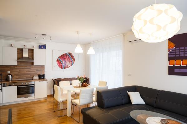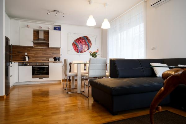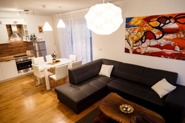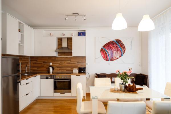 Apartments Art jezioro sprawiają, 3 luksusowe apartamenty z jacuzzi i dużym balkonem, nowej, w pełni wyposażone kuchnie, sypialnie mają podwójne lub pojedyncze łóżka, znajduje się w doskonałej lokalizacji w pobliżu centrum miasta, a zaletą tego miejsca jest to, że znajduje się w cichej i zielonej okolicy, a jednocześnie jest blisko do centrum, które znajduje się zaledwie 10 minut. tramwajem lub samochodem. W przedniej części mieszkania znajduje się prywatny zamknięty parking i bezpłatny. Apartamenty A1, A2 i A3 znajduje się na parterze, 1 i 2 piętrze budynku. Mogą być wynajmowane razem, a także otrzymać maksymalnie 16 osób. Idealne miejsce, ponieważ posiada zdolność do 16 osób, a dla wszystkich, którzy chcą na chwilę uciec od miejskiego zgiełku i cieszyć się tą oazę zieleni i spokoju, ale również korzystać z naszego jeziora Jarun, kawa, życie nocne, dobre jedzenie, pływanie czy może różne sporty. Otoczone zielenią, chodniki, ścieżki do biegania, jazdy na rowerze, sporty wodne, ale również zaledwie 50 metrów od hotelu znajdują się dwa kluby nocne