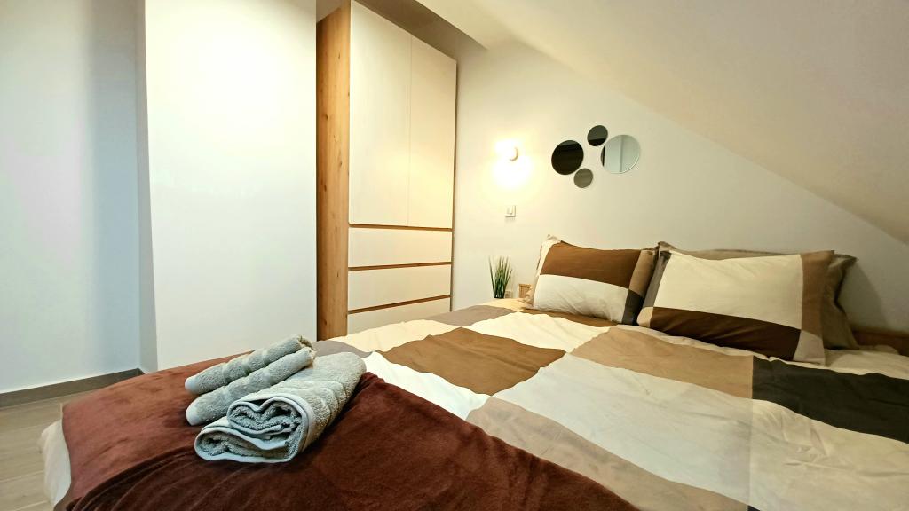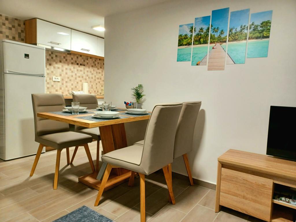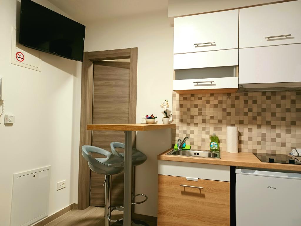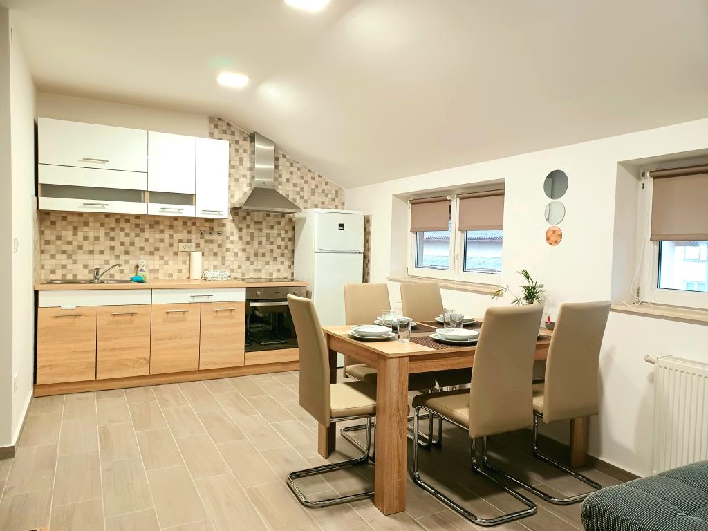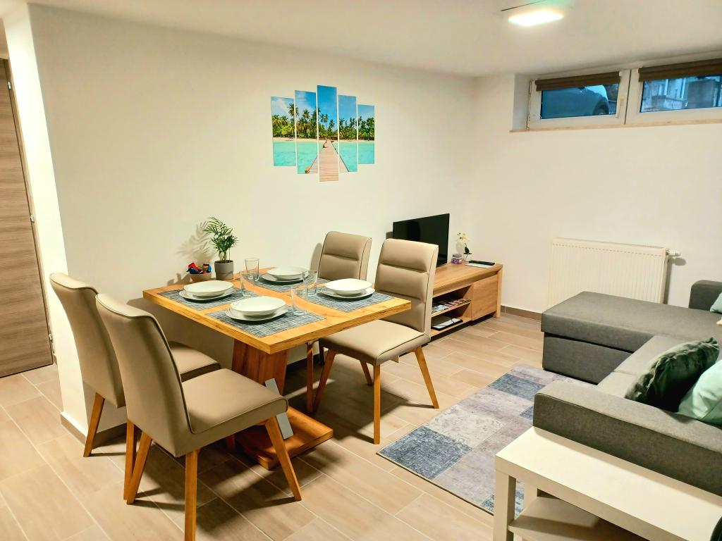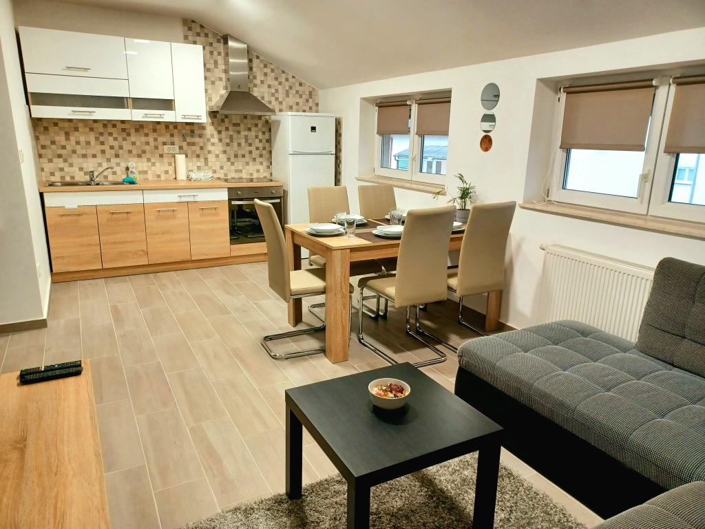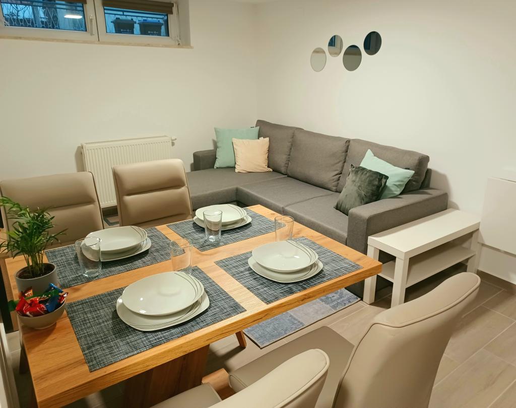 Obiekt składa się z 6 jednostek noclegowych, mogących pomieścić do 11 osób. Każda jednostka posiada własną kuchnię i łazienkę. Apartamenty położone są w spokojnej miejscowości, przy ślepej uliczce z wyjściem dla pieszych na drogę główną (50 m). Doskonałe połączenia komunikacyjne, blisko restauracji (300 m) i sklepów (100 m). Odległość od centrum miasta wynosi około 20 minut jazdy samochodem, rowerem lub komunikacją miejską. Doskonała lokalizacja apartamentów dla gości przyjeżdżających z przyczyn zdrowotnych ze względu na bliskość kilku szpitali i klinik.