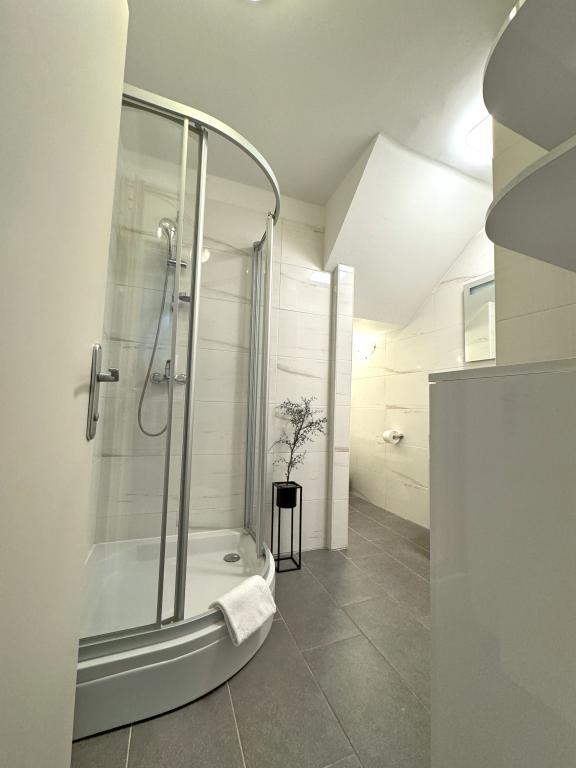 Apartamenty w sercu Zagrzebia – Frankopanska 11 Szukasz idealnego noclegu w centrum Zagrzebia? W prestiżowej lokalizacji przy ulicy Frankopanska oferujemy trzy nowocześnie urządzone apartamenty, idealne na krótki lub długi pobyt. Oferta noclegowa: Apartament z jedną sypialnią (50 m²) – przestronny apartament z w pełni wyposażoną kuchnią, komfortowym salonem, oddzielną sypialnią i łazienką. Odpowiedni dla maksymalnie 4 osób. Dwa apartamenty typu studio (ok. 30 m²) – kompaktowe, ale funkcjonalne przestrzenie dla 3 i 2 osób, idealne dla par lub osób podróżujących samotnie. Kuchnie są w pełni wyposażone: Zmywarka do naczyń Mikrofalówka Czajnik elektryczny Wszystkie niezbędne przybory kuchenne i naczynia do pełnego doświadczenia gotowania Lokalizacja, która inspiruje: W strefie wyłączonej z ruchu kołowego, w otoczeniu sklepów, muzeów, restauracji i kawiarni 7 minut spacerem do głównego placu w Zagrzebiu (Trg bana Jelačića) 3 minuty spacerem do Chorwackiego Teatru Narodowego (HNK) Przystanek tramwajowy zaledwie 50 metrów