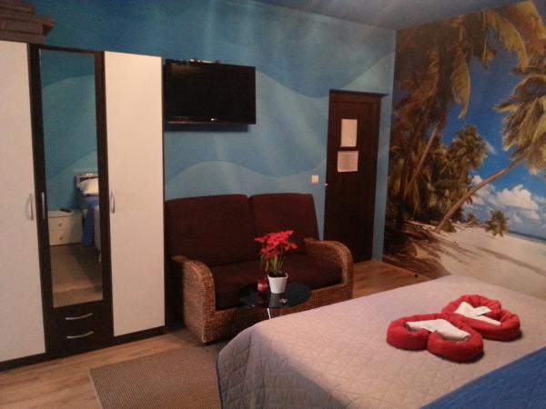 Apartamenty wyposażone są we wszystkie udogodnienia, aby poczuć się jak w domu. Co oferujemy jest stosowanie sprzętu gospodarstwa domowego, klimatyzatory, kuchenki, lodówki, żelazka i deski do prasowania, centralne ogrzewanie, pralka i suszarka do włosów. Latem obiekt oferuje korzystanie z odkrytego basenu z dyszami do masażu i wielkim słonecznym tarasem na relaks i opalanie. Cały Nasz obiekt oferuje bezpłatny bezprzewodowy dostęp do Internetu.