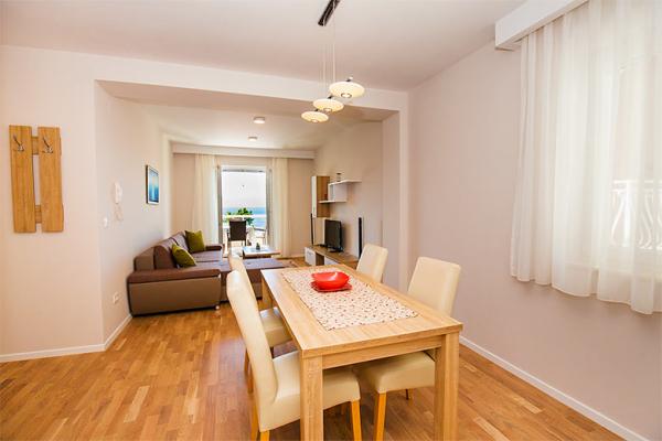 Byliśmy w 2+2 w 2 połowie czerwca. Piękny,duży,bardzo czysty apartament. piękny widok na morze,do plaży 2 minuty.. piękne miejsce na wieczorne spacery wzdłuż morza pełno knajpek(restauracji) przy morzu gdzie można dobrze zjeść. włascicielka bardzo miła.