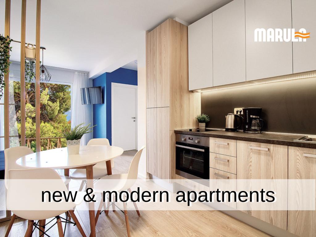 Nowo wybudowane i nowocześnie wyposażone apartamenty Marula znajdują się w pięknym domu rodzinnym, zaledwie kilka minut spacerem do plaży, sklepów i restauracji. Każdy apartament oferuje zakwaterowanie dla maksymalnie 4 osób, z możliwością dostawki dla piątej osoby. Apartamenty posiadają dwuosobową sypialnię, pokój dzienny z kuchnią, łazienkę i taras lub balkon. Apartamenty posiadają klimatyzację, telewizję satelitarną, internet Wi-Fi oraz parking. Ponadto do Państwa dyspozycji jest bezpłatne korzystanie z rowerów, grilla i pralek.