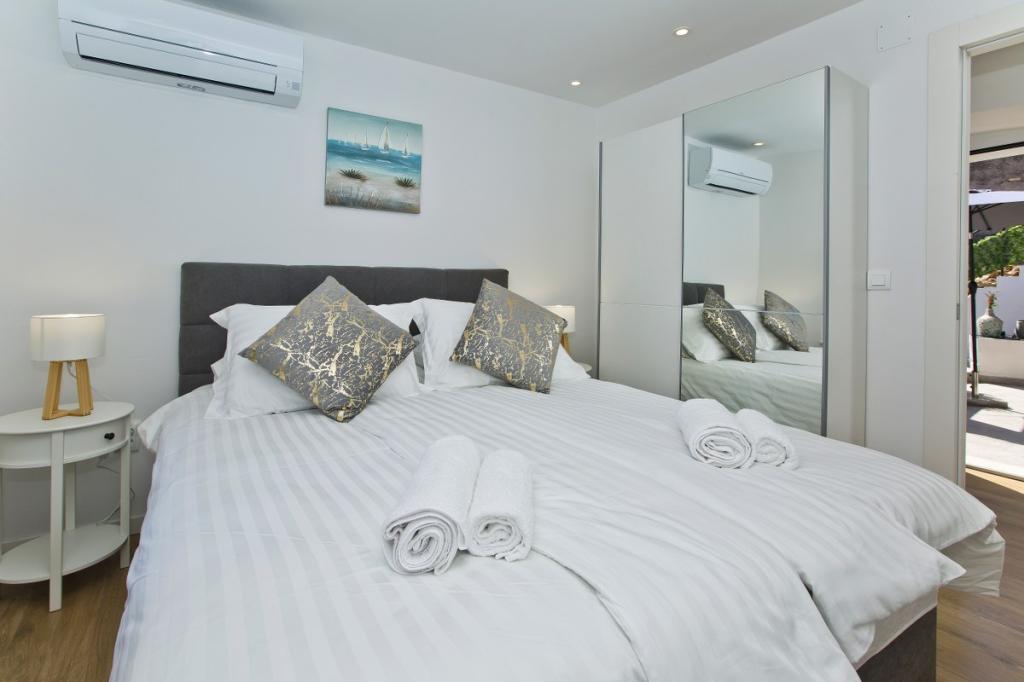 Dom składa się z apartamentu o powierzchni 30 m² i ogrodu o powierzchni 20 m². Apartament składa się z sypialni, łazienki, salonu z kuchnią oraz małego schowka. Z pokoju roztacza się piękny widok. Znajduje się w nim podwójne łóżko, pod którym znajduje się schowek na bagaż o wymiarach 160x200 cm. Znajduje się tam również duża szafa z przesuwanymi drzwiami, dwie szafki nocne z lampkami i klimatyzacja. Łazienka wyposażona jest w prysznic, grzejnik, wentylator, umywalkę i toaletę. Salon z oknem i kuchnia są połączone. Salon wyposażony jest w klimatyzację, sofę, telewizor, stół kuchenny z krzesłami. Kuchnia wyposażona jest w piekarnik, płytę grzewczą, zmywarkę, lodówkę, kuchenkę mikrofalową, podgrzewacz wody i toster. W małym schowku znajduje się pralka, bojler i stojak na buty. Ogród przeznaczony jest do spotkań towarzyskich i relaksu, a znajduje się tam leżak, parasol, krzesła i zestaw ogrodowy. Apartament znajduje się na pierwszym piętrze domu rodzinnego, a przed nim znajduje się duży ogród.