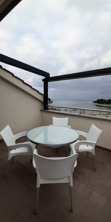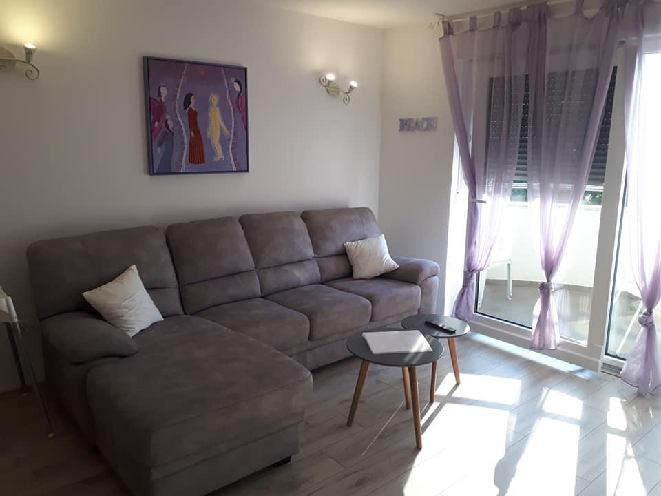 Nowy, nowoczesny i gustownie urządzony apartament z dwiema sypialniami, w każdym z klimatyzacją, z widokiem na morze, 20 m od plaży (po drugiej stronie ulicy).