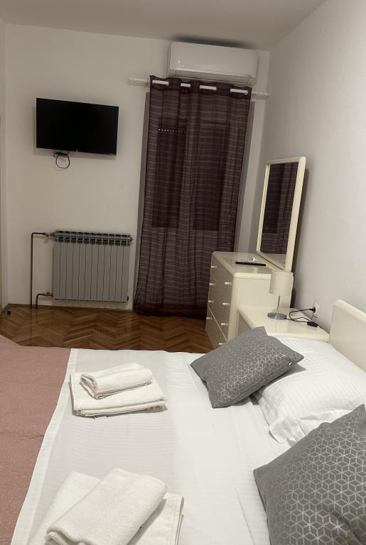 Apartament "Tica" Zaton z basenem to nowo wyremontowany apartament na pierwszym piętrze domu rodzinnego z basenem i może pomieścić do 6 osób. Znajduje się w małej dalmatyńskiej miejscowości turystycznej Zaton, 12 km od Zadaru i tylko 2 km od starego historycznego miasta Nin.Składa się z dwóch dużych sypialni wyposażonych w telewizję satelitarną, łazienki z wanną, kuchni wyposażonej we wszystkie sprzęty kuchenne, pokoju dziennego z rozkładanym łóżkiem dla dwóch osób i wyposażonego w klimatyzację klimatyzacja, Wi-Fi, telewizja satelitarna, pralka i duży taras.Goście otrzymują bezpłatny bilet parkingowy na wszystkich lokalnych plażach w Zaton i na terenie miasta Nin.Na dziedzińcu apartamentu znajduje się tawerna z grill i inne udogodnienia dla przyjemnego pobytu przy basenie.Mieszkanie znajduje się 800 metrów od plaży (10 min. pieszo, 2 min. samochodem).W bezpośrednim sąsiedztwie 30 m znajduje się restauracja, kawiarnia, plac zabaw dla dzieci, market, piekarnia i informacja turystyczna.Minimalny pobyt w apartamencie to 7 nocy.W apartamencie jest za mało zwierząt.Czekamy na Państwa przyjazd.