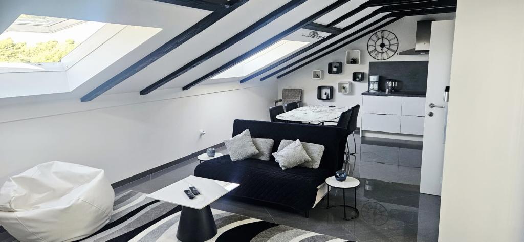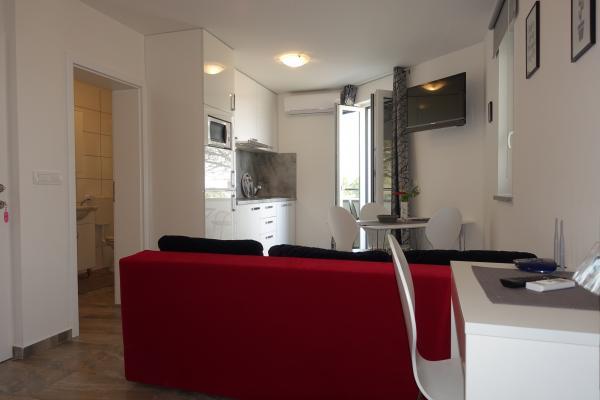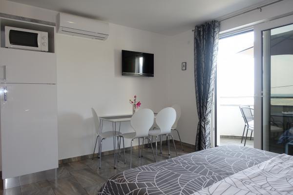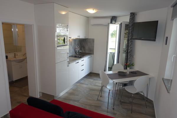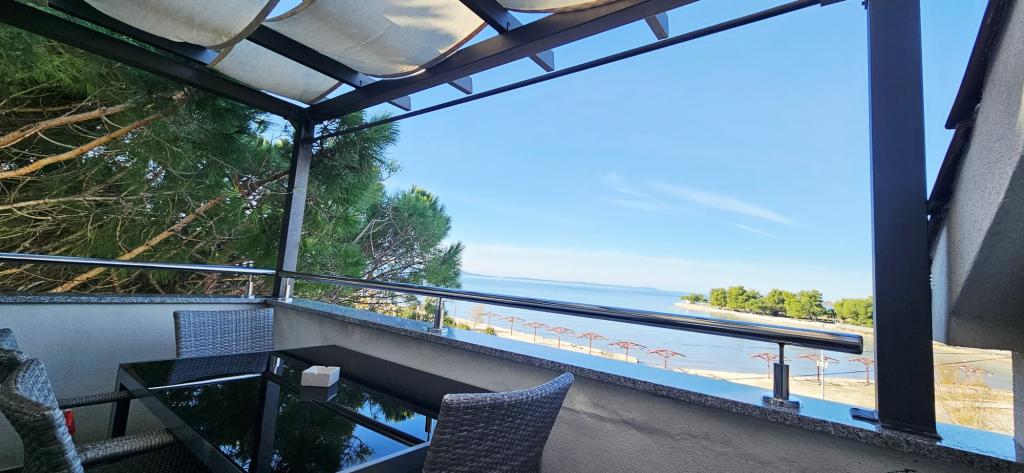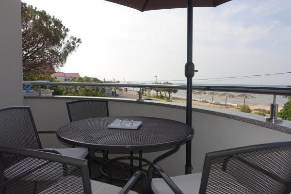 Obiekt położony jest tuż nad morzem, tuż przy plaży w Zatonie. Domy z apartamentami znajdują się obok siebie, a wszystkie apartamenty mają widok na morze. Wi-Fi, parking i klimatyzacja są wliczone w cenę.